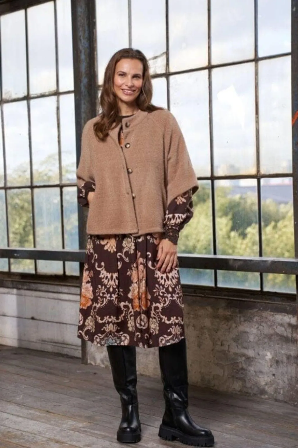 Kamelbrun jakke fra Marta Du Chateau med en løs, kappe-lignende pasform. Jakken har en ensfarvet brun nuance og en afslappet silhuet.