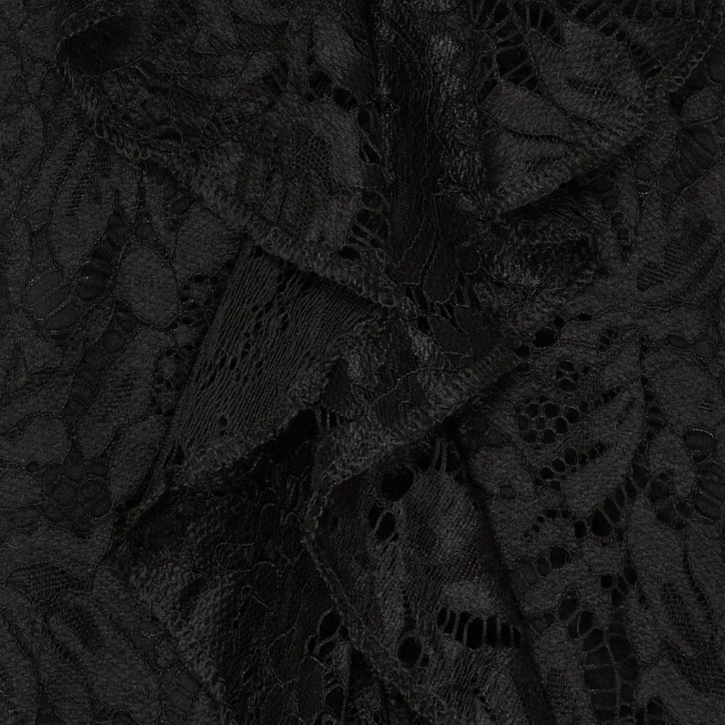 Sort blondebluse fra Marta Du Chateau med V-udskæring og flæser. Blusen har lange ærmer med blondedetaljer og passer til både formelle og afslappede sammenhænge.