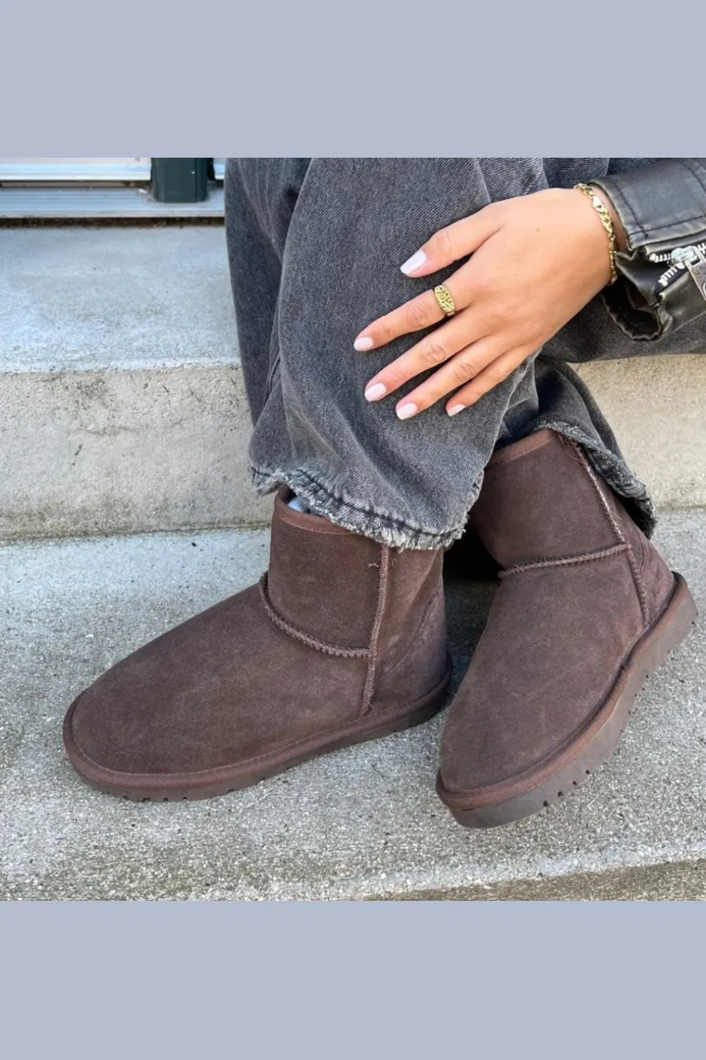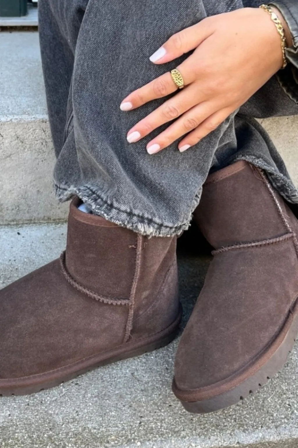 Mørkebrun støvle fra Copenhagen Shoes i ruskind og læder. Støvlen har et blødt pelsfor med uld og er udstyret med letvægtsåler.
