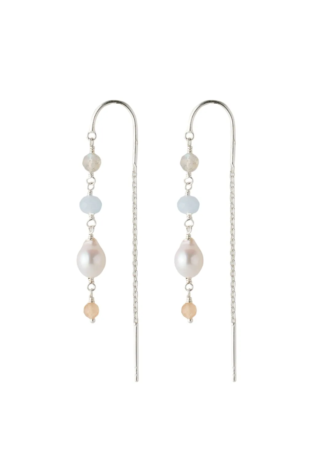 Mellow Blue Earchains er designet af Pernille Corydon. De elegante øreringe er udsmykket med perler i forskellige lyse farver, størrelser og former, der alle hylder sommerens milde væsen. Øreringene fås i både sølv og forgyldt sølv og er fremstillet af certificeret genanvendt sølv.