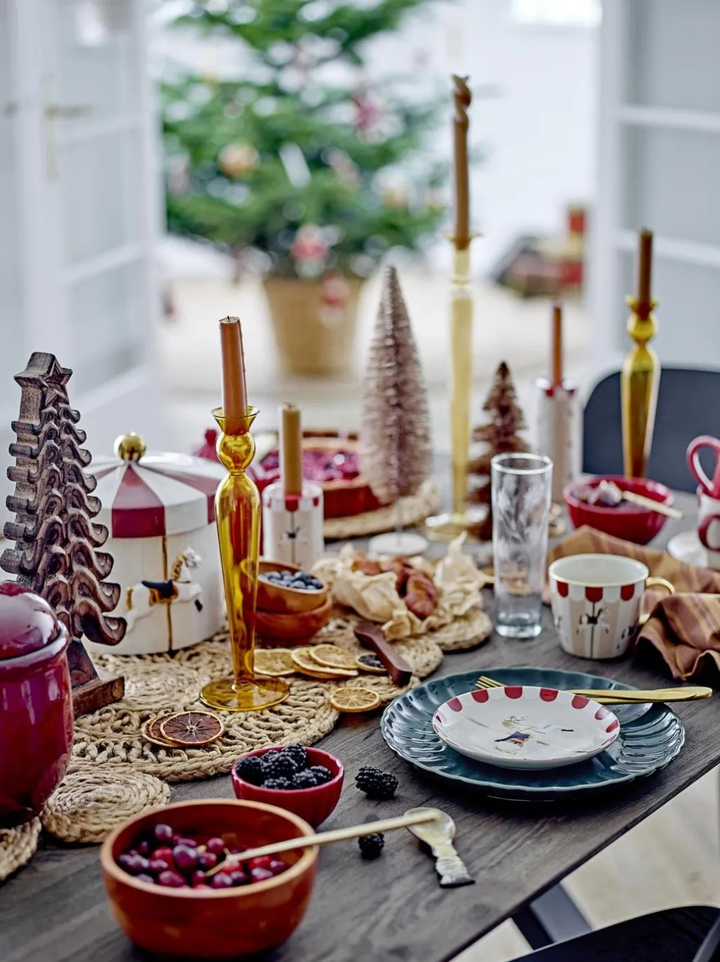 Merry-go-round Tallerkenen fra Bloomingville er et sæt af to charmerende desserttallerkner, dekoreret med et festligt karruselmønster.Hver tallerken er udsmykket med håndmalede detaljer, der gør dem unikke og tilføjer en nostalgisk charme.De er perfekte til at skabe en hyggelig og legende stemning ved julebordet eller til andre særlige anledninger.