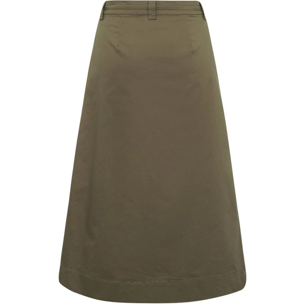 Khaki-brun nederdel fra Gossia med plisseret design. Nederdelen har en længde til midt på læggen og en snøredetalje i taljen sammen med en lynlås.