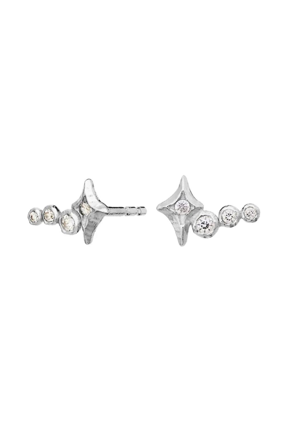 Øreringe fra Maanesten med et stjerneformet design. Hver ørering er dekoreret med små runde zirkoner, der sidder symmetrisk omkring stjernen.