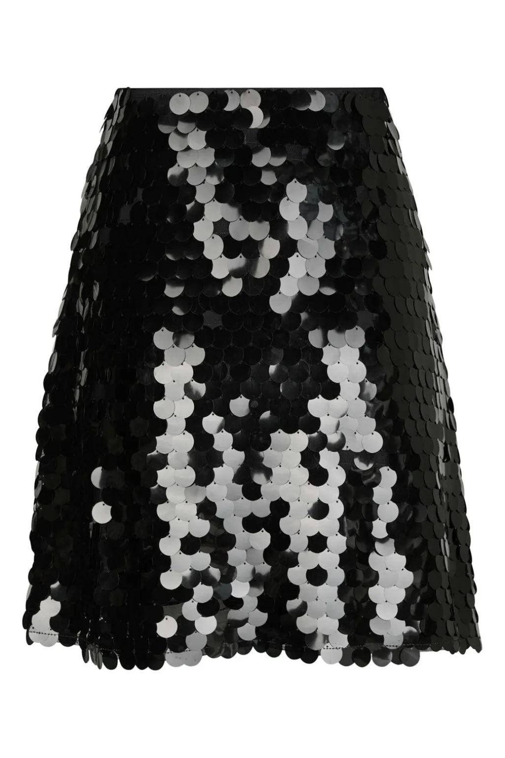 Sort nederdel fra Neo Noir med store pailletter i sort og sølv. Den korte model har en regular waist og lynlås lukning. Nederdelen er designet til festlige anledninger.