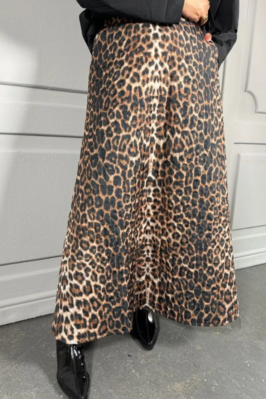 Ankellang nederdel fra Stories From The Atelier By Copenhagen Shoes med brunt leopardprint. Den syntetiske nederdel har en elastisk talje og en regular fit.