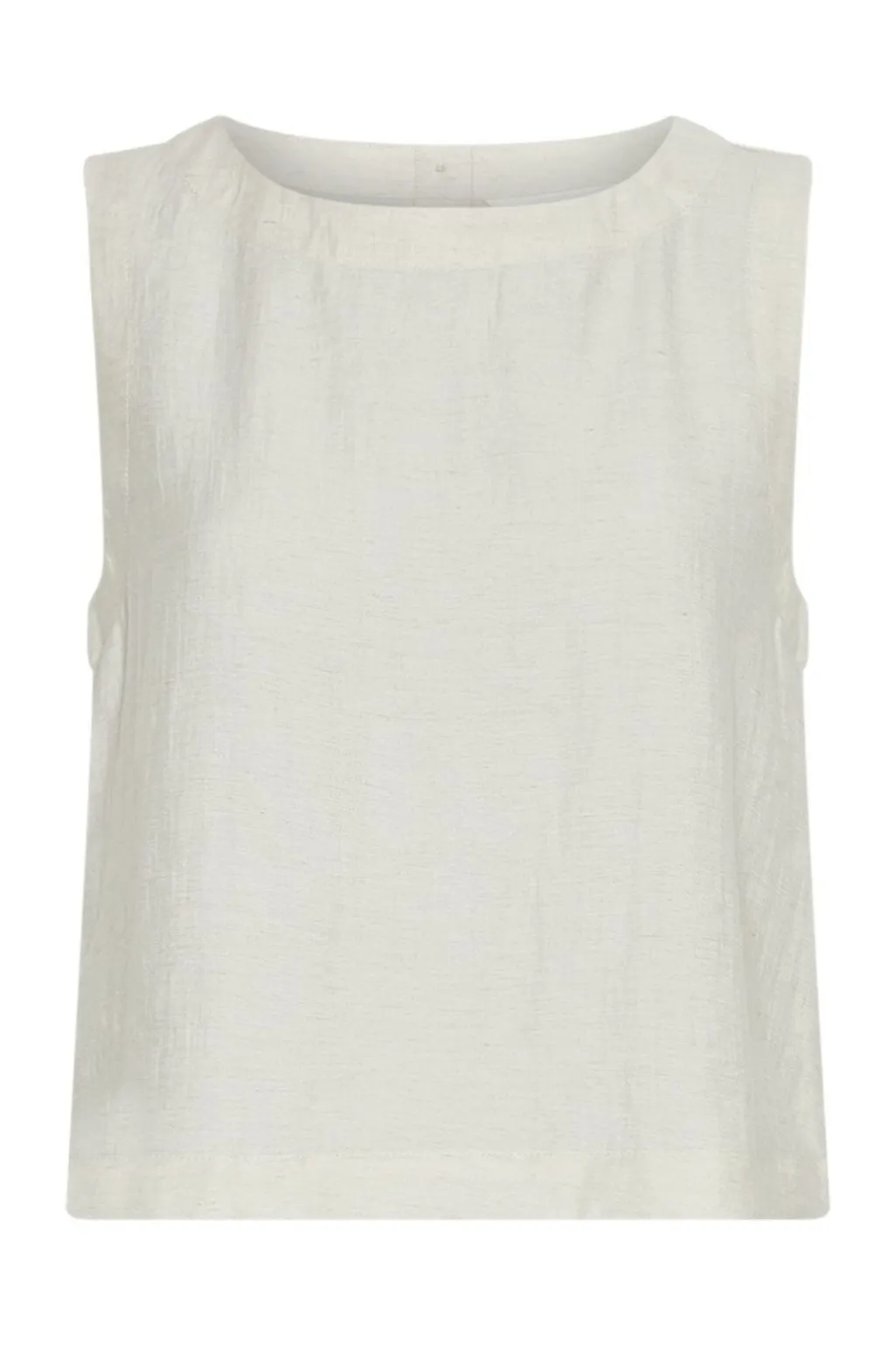 Ærmeløs top fra Moss Copenhagen i sand melange. Toppen har en rund halsudskæring og et enkelt design i en neutral farvetone med meleret udtryk.