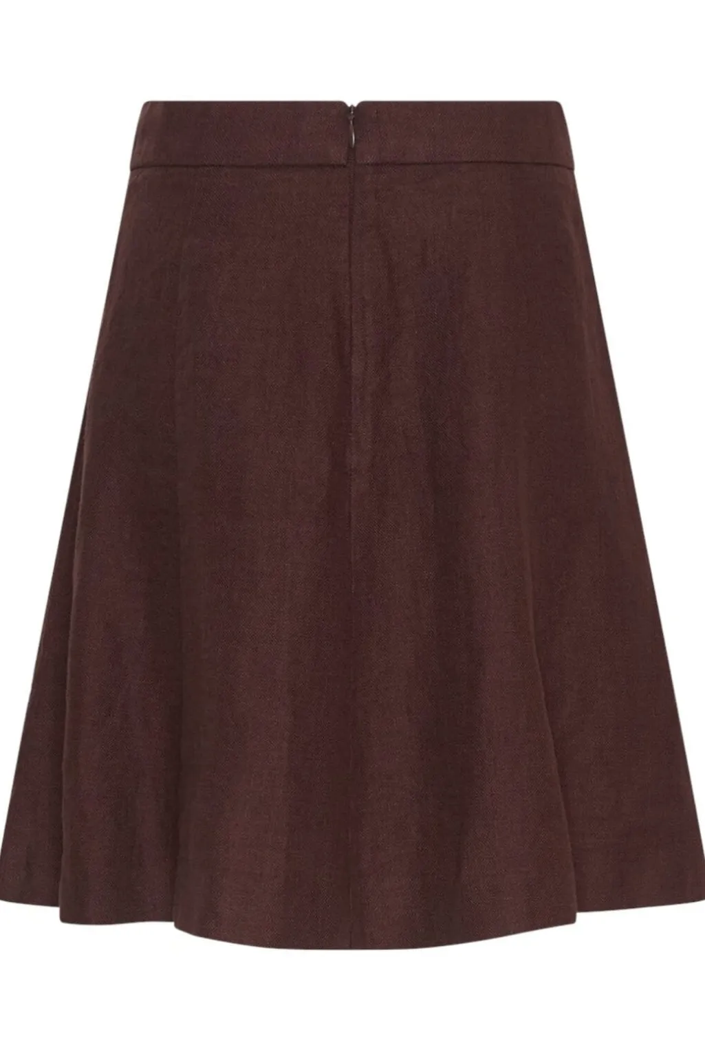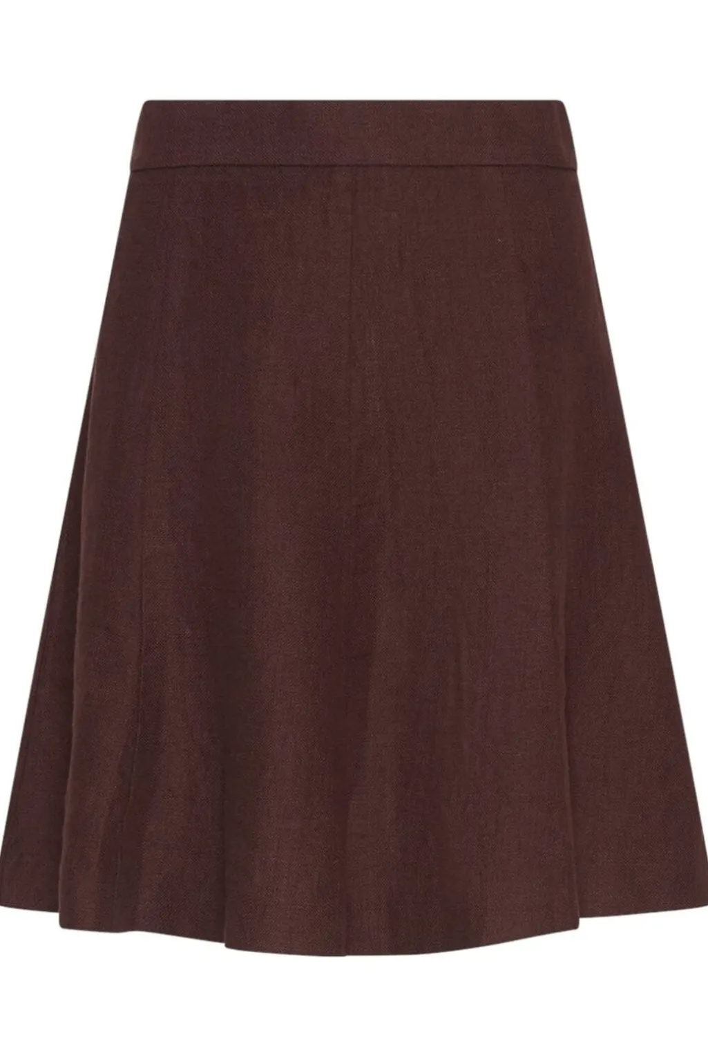 Nederdel i brun fudge-farve fra MSCH Copenhagen. Fremstillet i rent hør med et let og flagrende design i lårlængde.