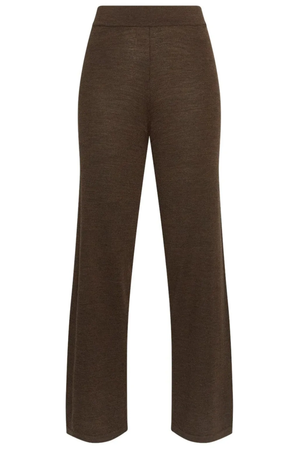 Bukser fra Moss Copenhagen, lavet af 100% merinould i en mørk meleret brun nuance. Bukserne har lige ben og en løs pasform.