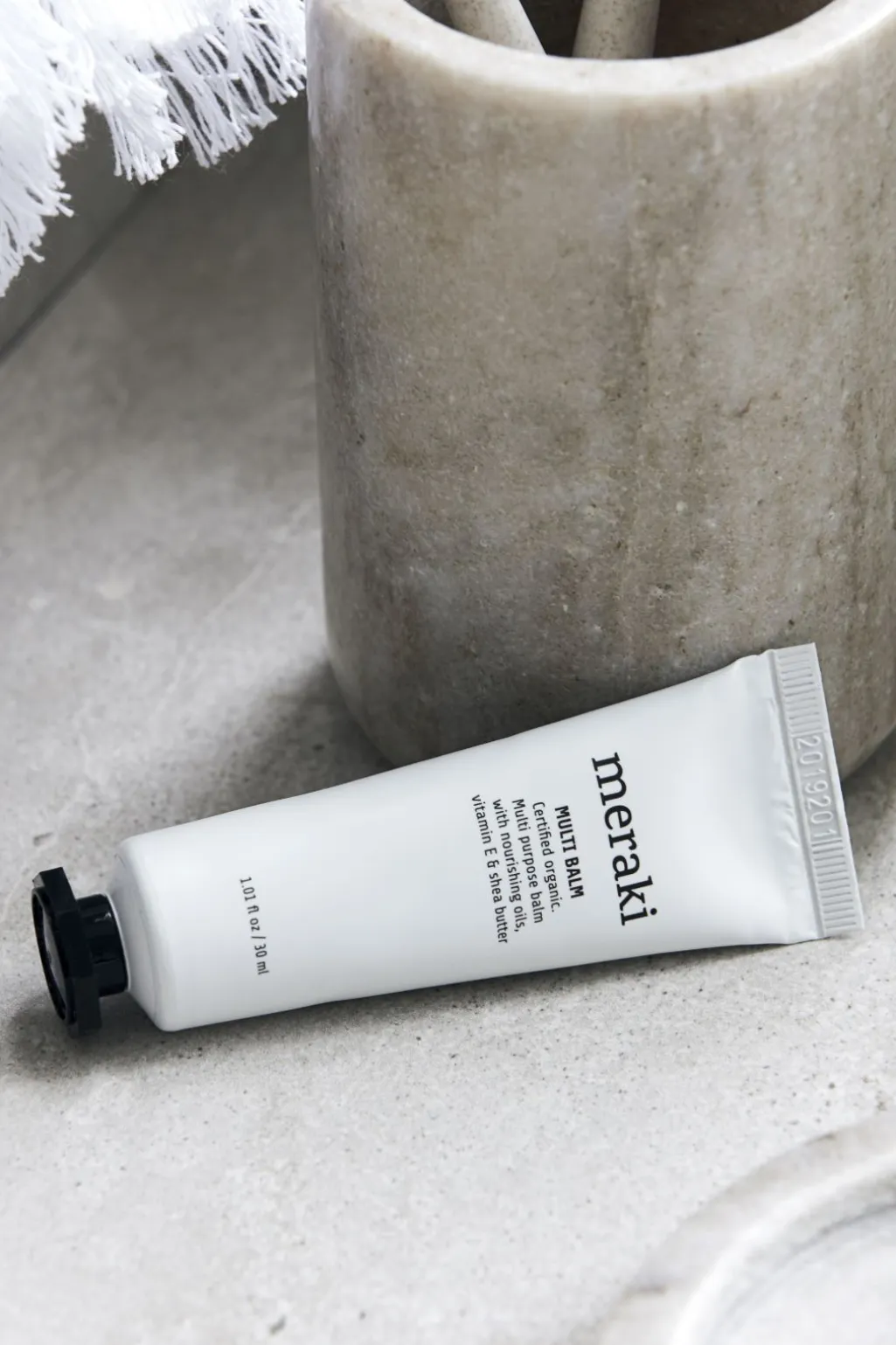 De økologiske olier og sheasmørret i balmen giver næring til huden og hjælper med at holde den blød og smidig gennem dagen.