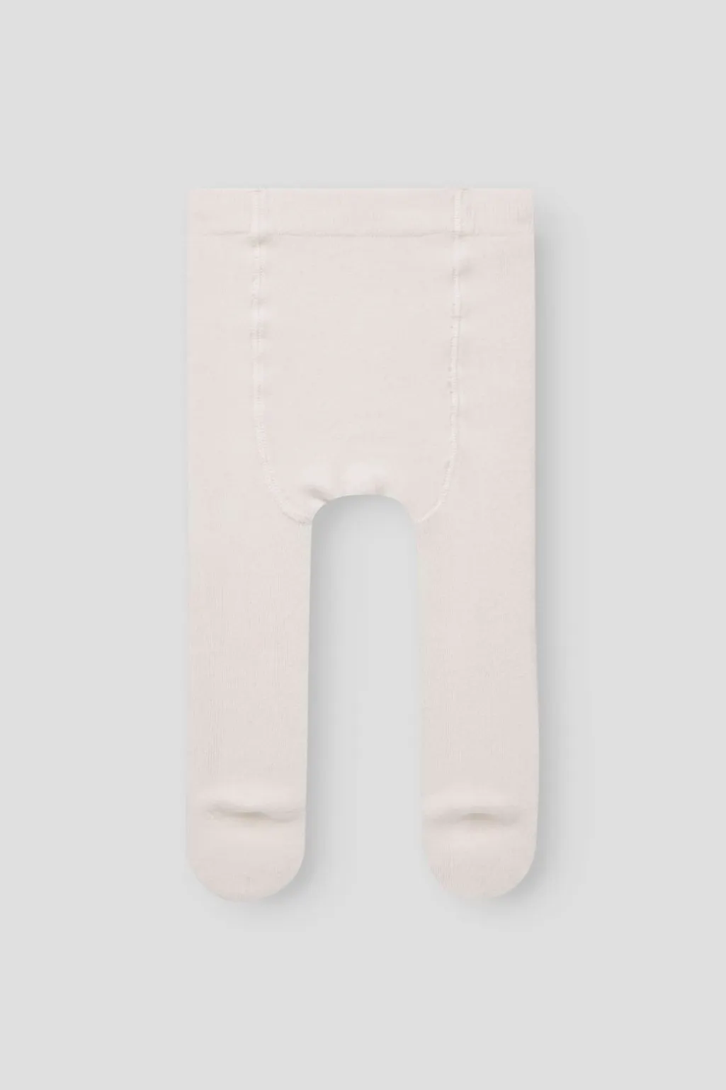 Hvide strømpebukser fra Name It med en enkel stil og en lille dekorativ detalje ved anklen. Fremstillet i en blød blanding af økologisk bomuld med stretch.