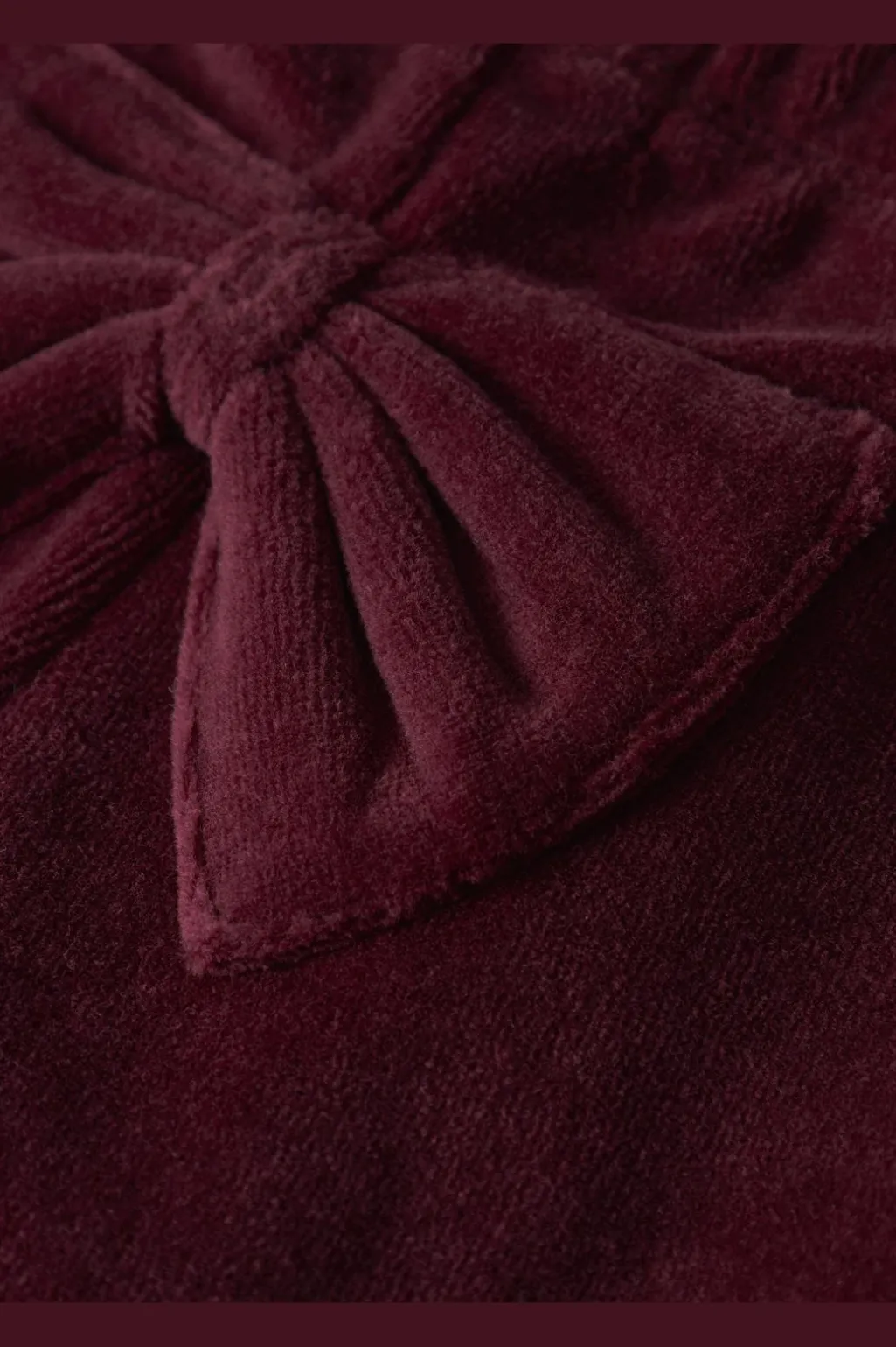 Velourleggings i en dyb bordeauxfarve. Lavet af blød velour med en dekorativ sløjfe på bagsiden. Den elastiske talje giver en god pasform.