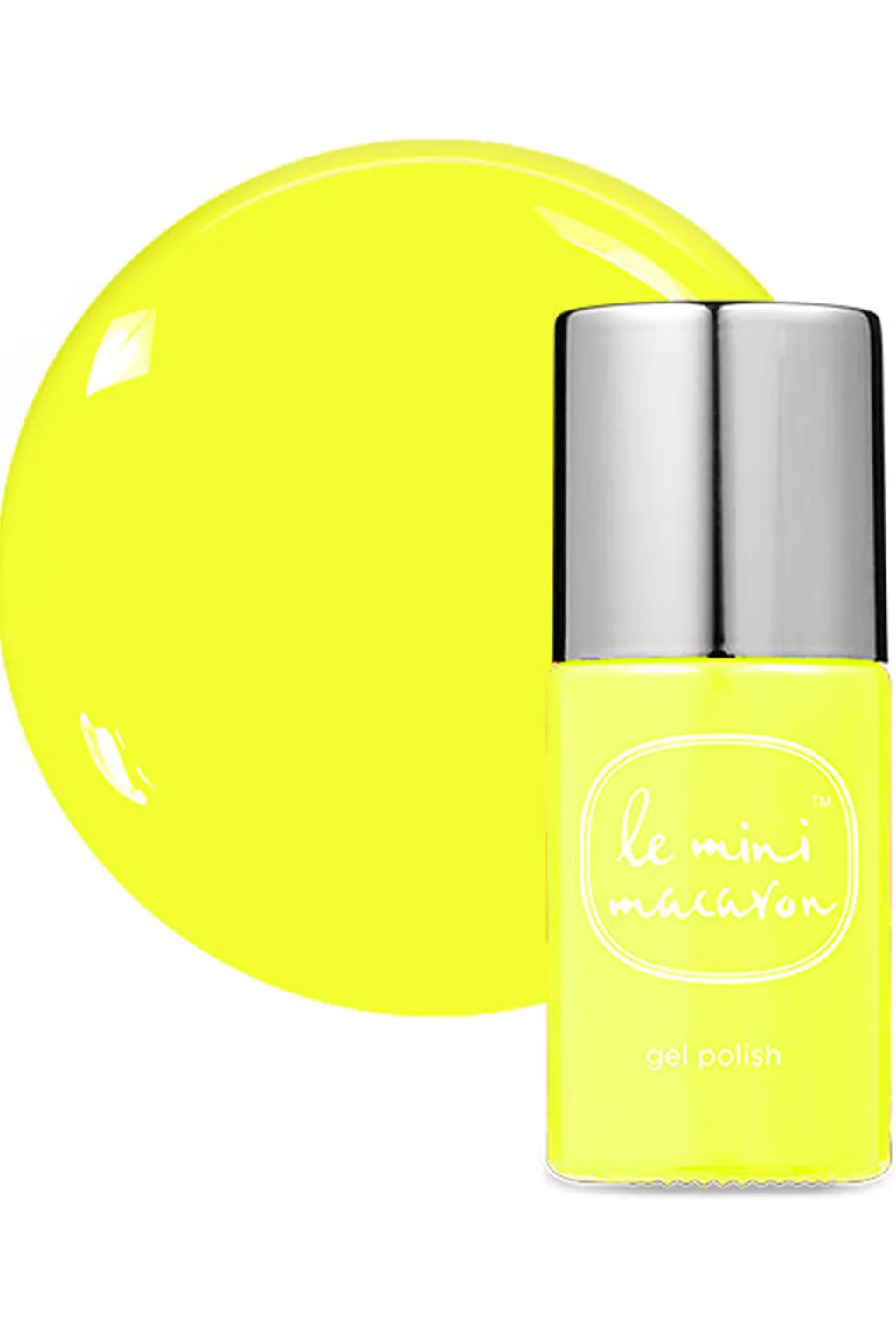 Gelneglelak fra Le Mini Macaron i en neongul farve. Lakken har en 3-i-1 formel med indbygget base coat, farve og top coat.