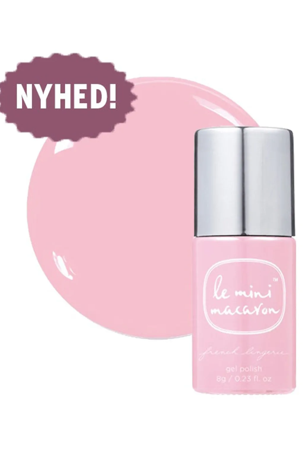 Lys pink gelneglelak fra Le Mini Macaron med en 3-i-1 formel, der samler base coat, farve og top coat i ét produkt. Lakken hærder på 30 sekunder under LED-lampe.
