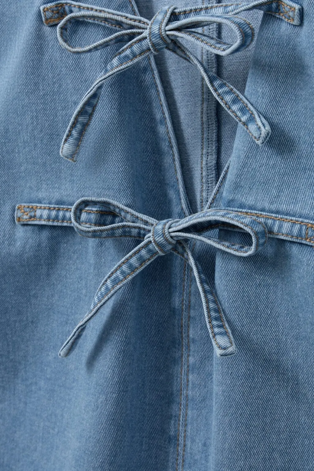 Denimtop fra Sofie Schnoor i blå denim med sløjfedetaljer foran. Toppen har V-hals og et ærmeløst design med to dekorative sløjfer, der fungerer som lukning.