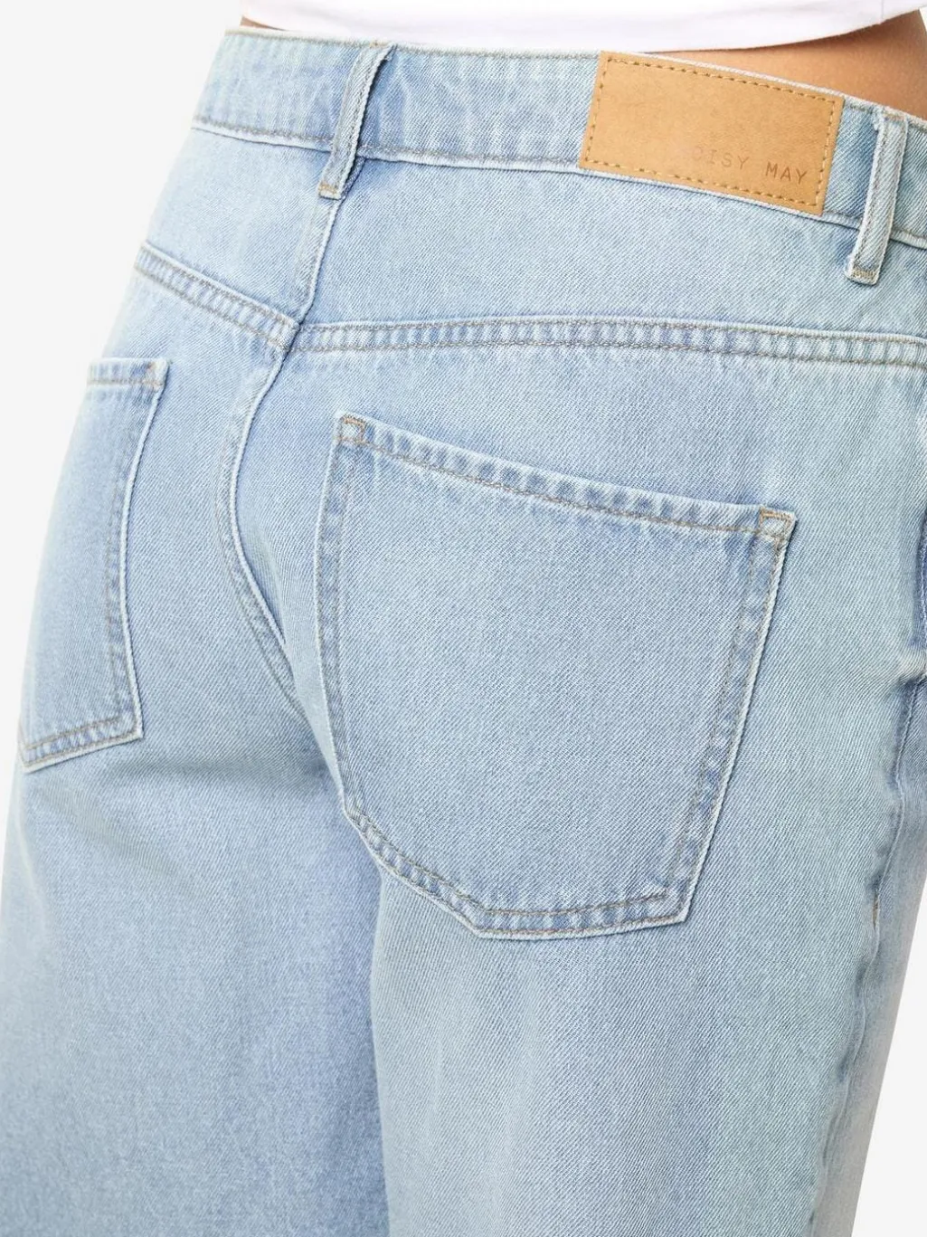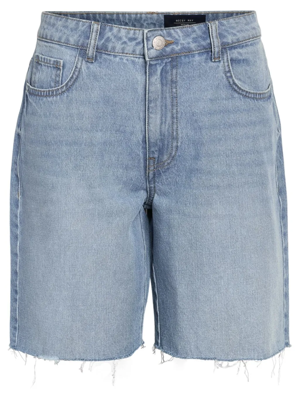 Løse denimshorts fra Noisy May i lys blå bomuld. Shortsene har knælængde og en løs pasform med frynset kant.