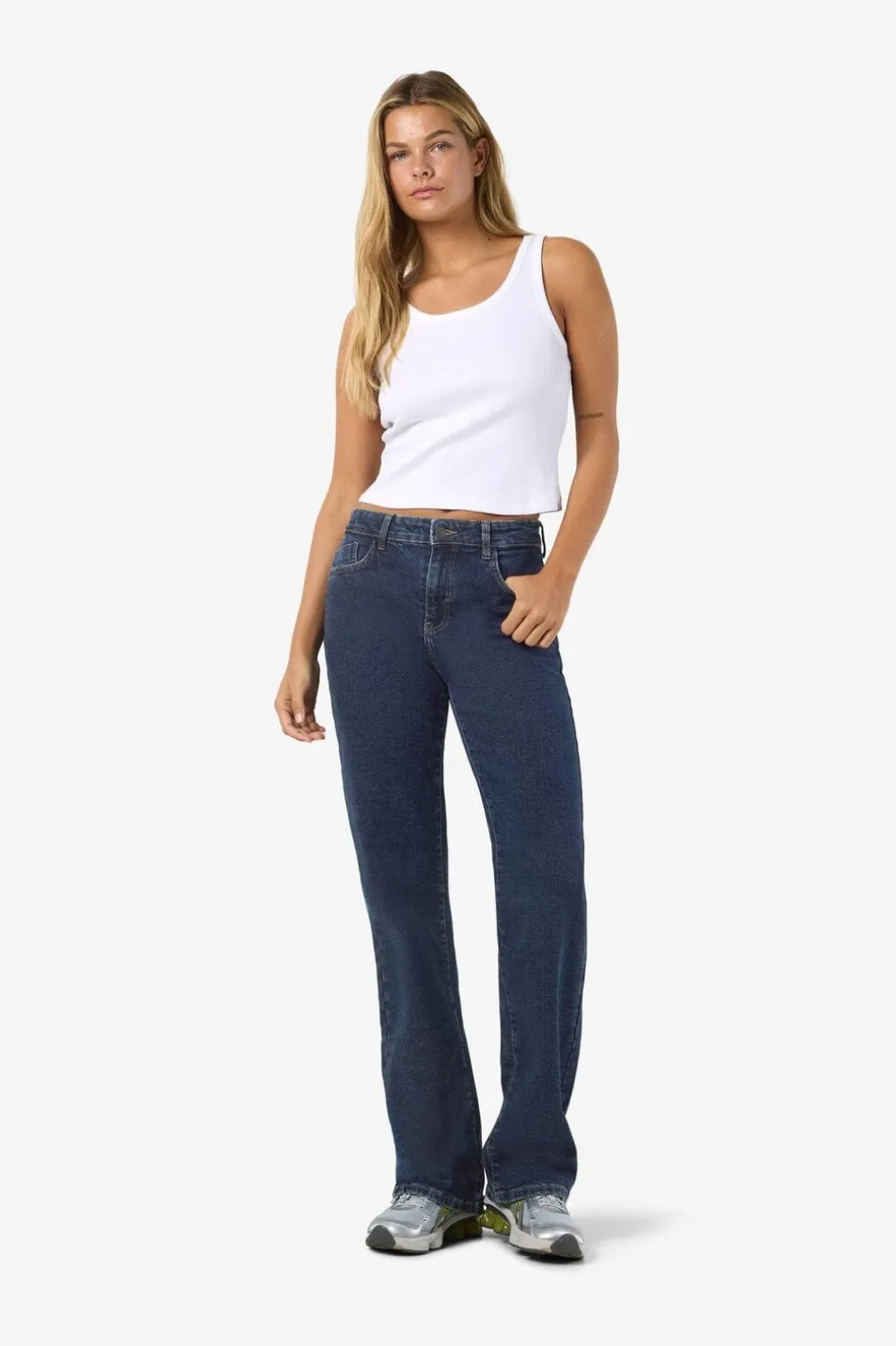 Brede jeans fra Noisy May i mørkeblå denim. Jeansene har en høj talje og en løs pasform med brede ben.