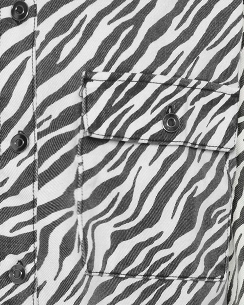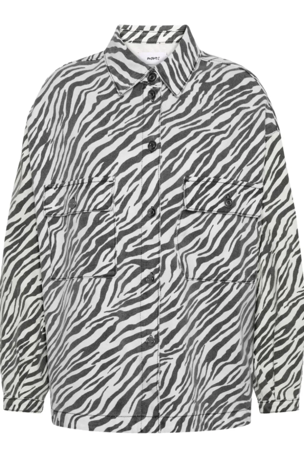 Sort og hvid skjorte fra Moves By Minimum med zebramønster. Skjorten har en normal pasform og er fremstillet i bomuldsstof med dekorative syninger og knaplukning.