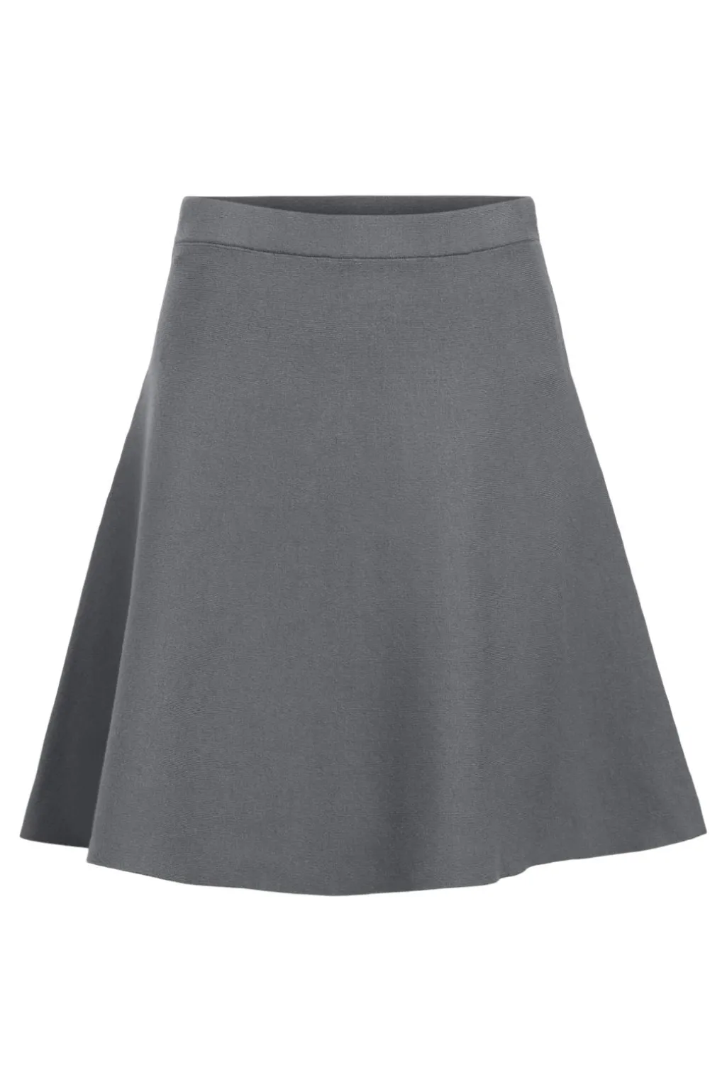 Strikket nederdel fra Object i grå melange. Den har en høj talje med elastisk kant og en kort, let udvidende form, der giver god bevægelsesfrihed.