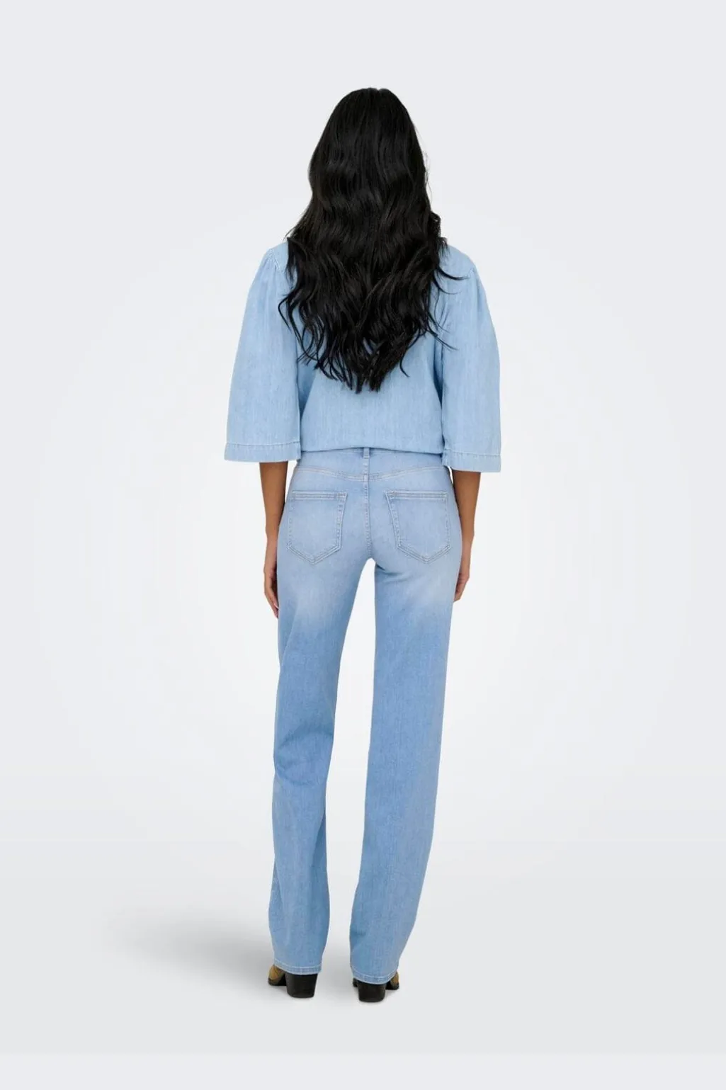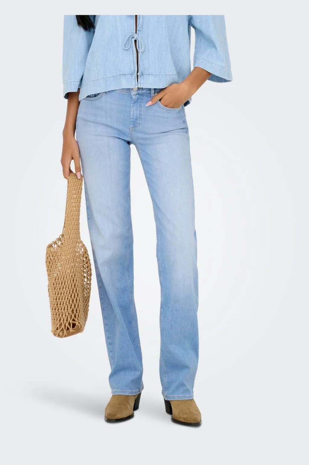 Lyseblå jeans fra Only med mellemhøj talje og lige ben. Jeansene har en lys vask og en regular fit-pasform.