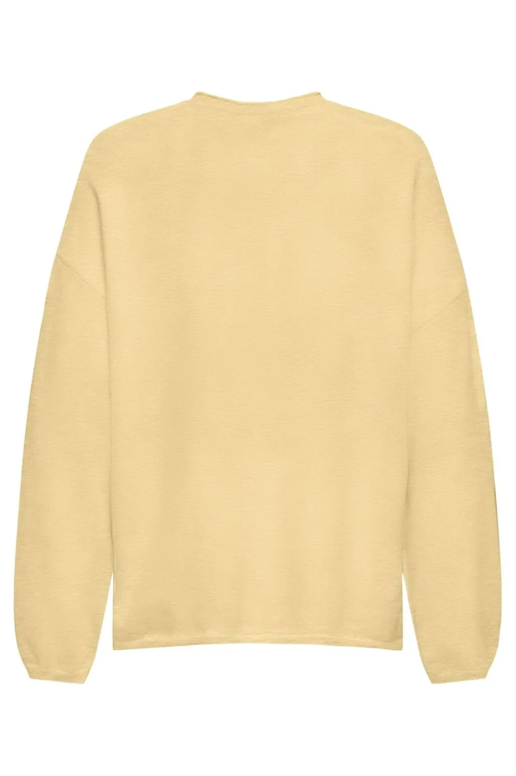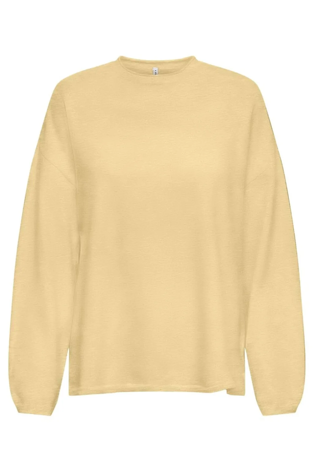 Striktrøje fra Only i en lys gul melange-nuance. Trøjen har en rund halsudskæring og lange ærmer med ribkanter.