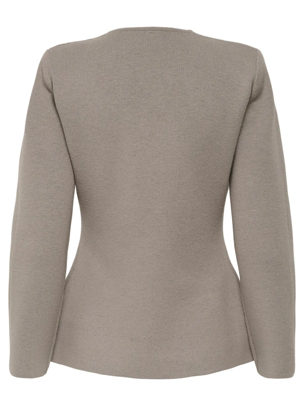 Grå cardigan fra Only med en enkelt knap. Den slanke pasform og V-udskæring giver cardiganen et rent og enkelt design i en neutral Moon Rock Melange-farve.