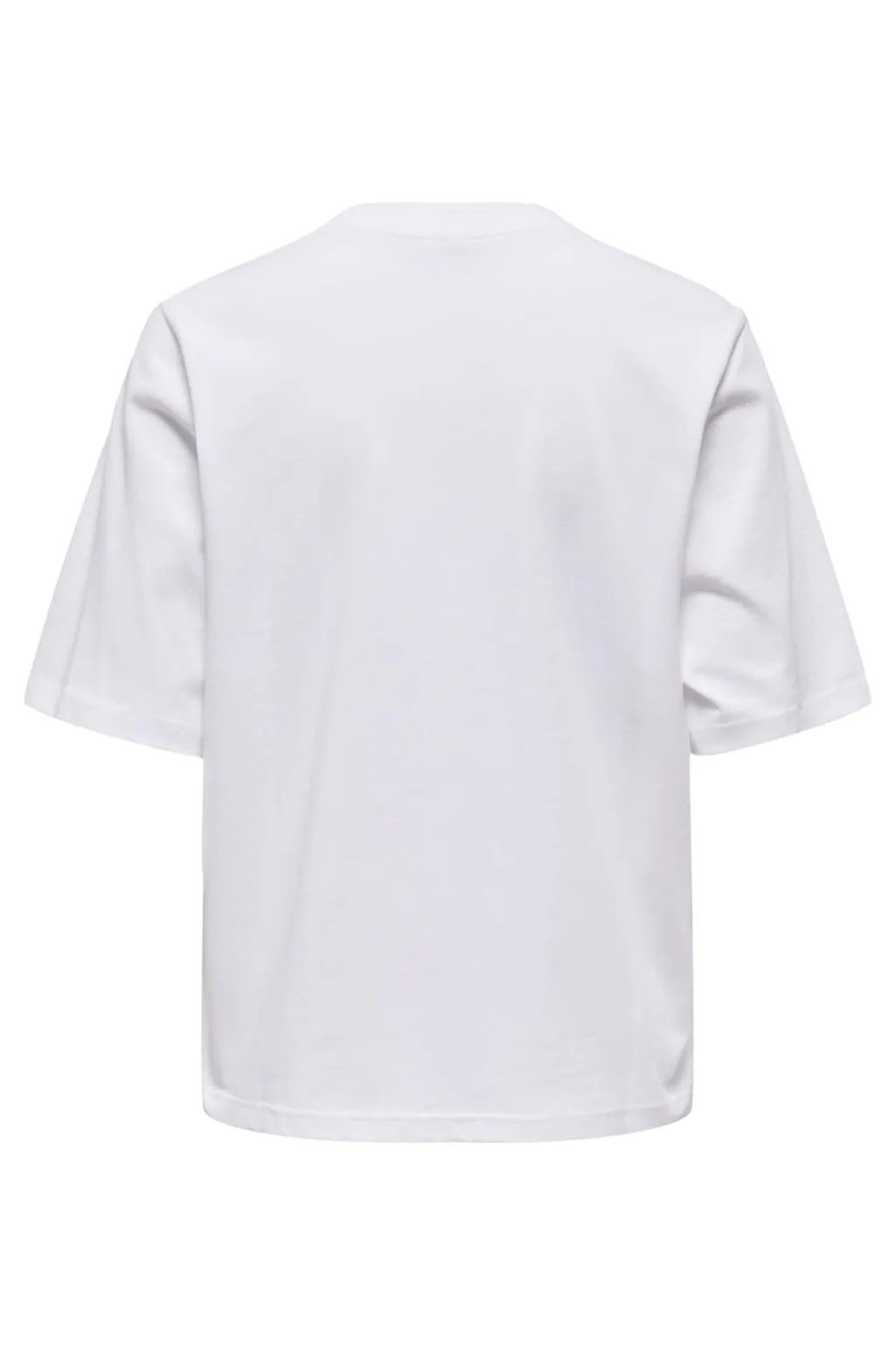 Hvid t-shirt fra Only med REVOLUTION print på forsiden. T-shirten har en løs pasform og rund hals, der giver plads til bevægelse. Den er fremstillet i økologisk bomuld med pailletter på printet.