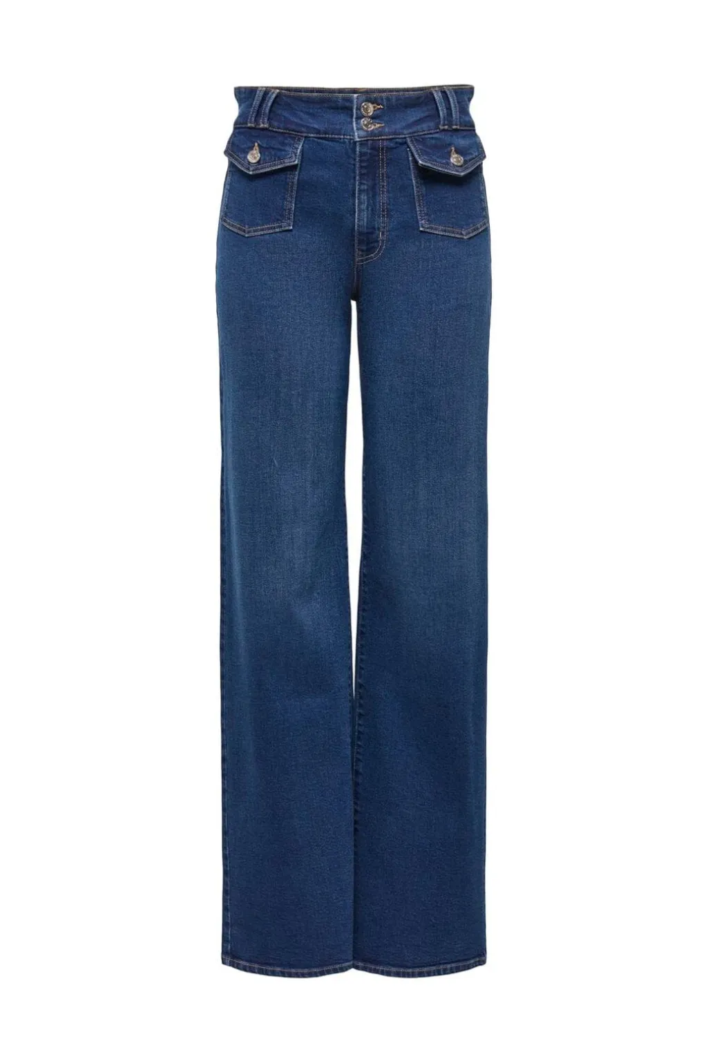 Mørkeblå jeans fra Only med en wide fit-pasform. Jeansene har høj talje og vide ben fra hofte til ankel.