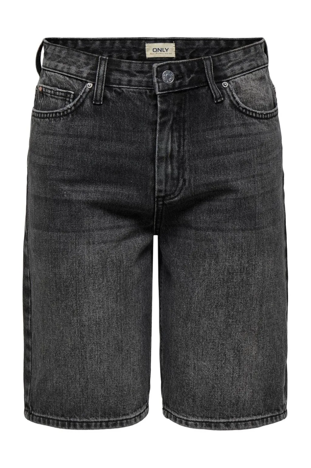 Vide shorts fra Only i en vasket sort farve. Shortsene har høj talje med bæltestropper og praktiske lommer både foran og bagpå. En regular fit-model med lynlås og knap.