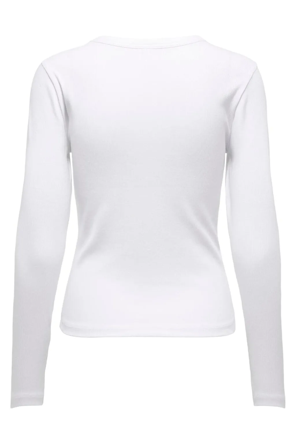 Hvid langærmet top fra Only med rund halsudskæring. Toppen er lavet i en blanding af økologisk bomuld og elastan, som giver en god strækbarhed og komfort.