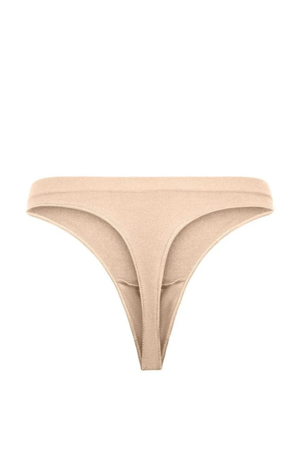 Sømløs thong fra Only i farven Peach Taffy. Den ribstrikkede tekstur og den elastiske talje giver en god pasform uden synlige kanter under tøjet.