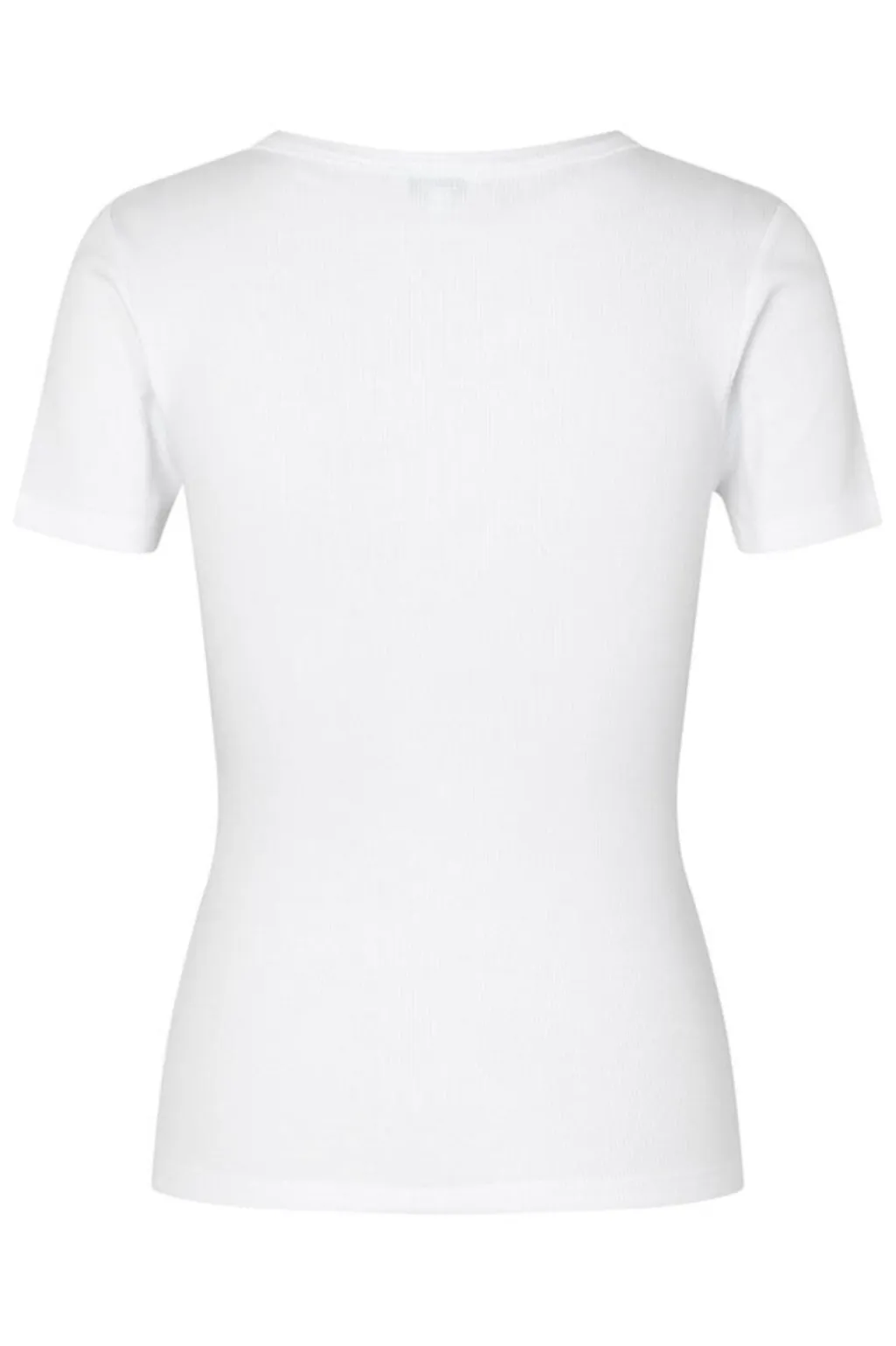 Hvid t-shirt fra MbyM med rund halsudskæring og korte ærmer. En enkel t-shirt i et rent design med fokus på komfort og holdbarhed.