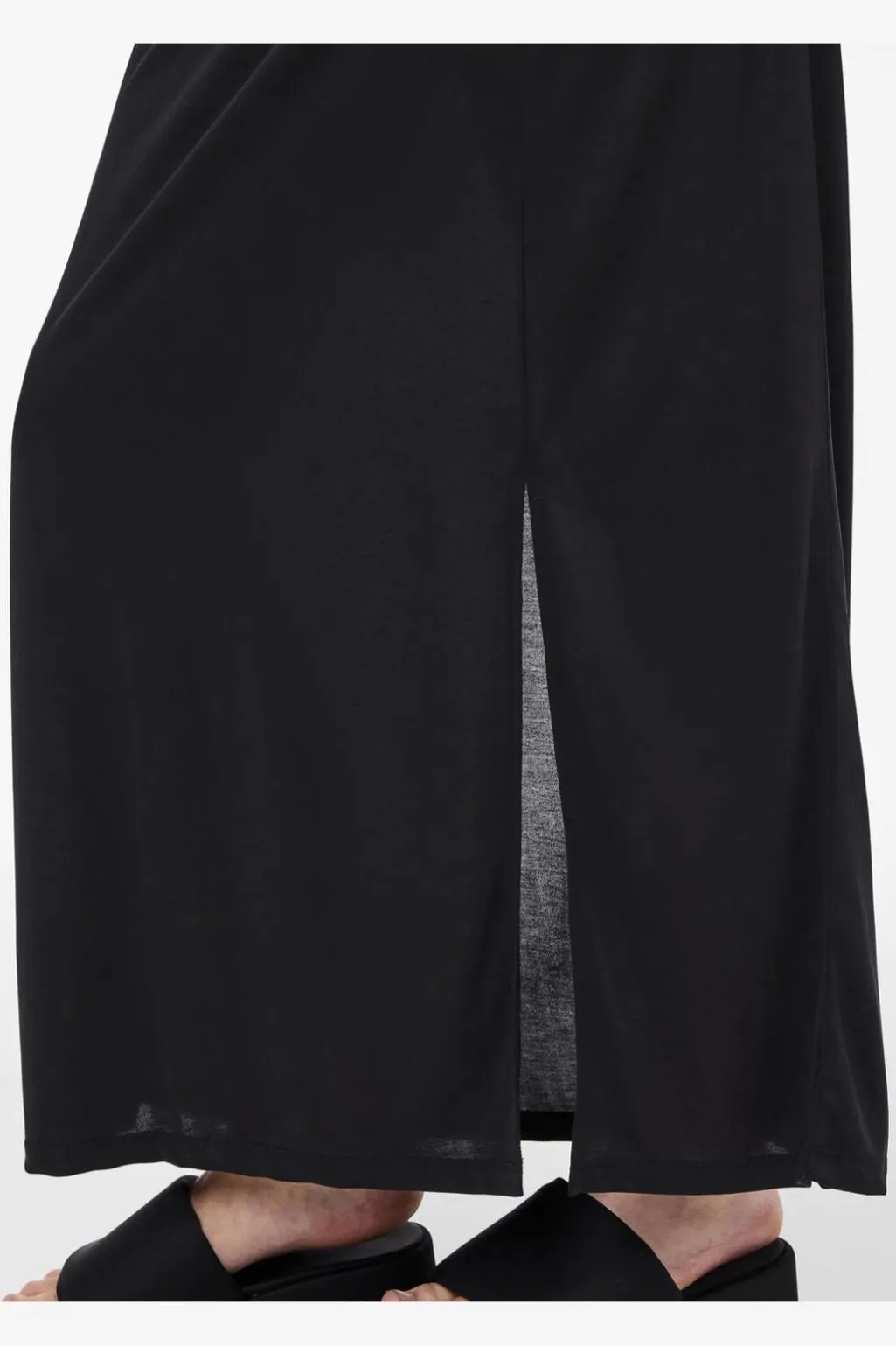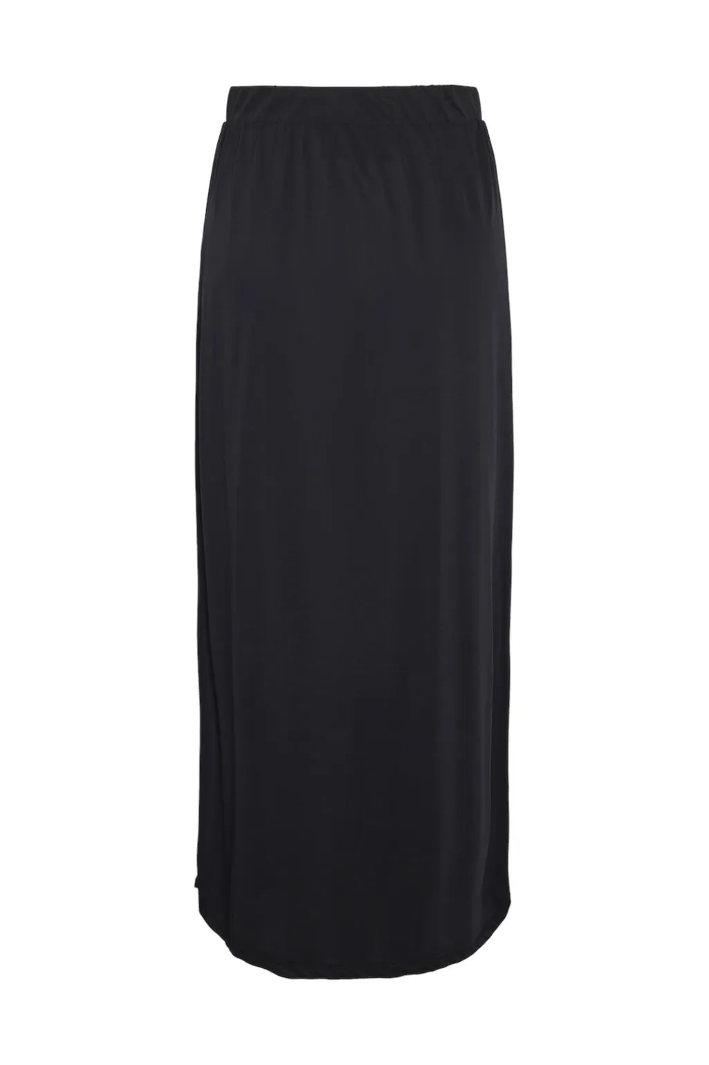 Sort ankelnederdel fra Pieces med høj talje og elastisk kant. Nederdelen har en sideslids og er lavet i et glat stof med et flot fald.