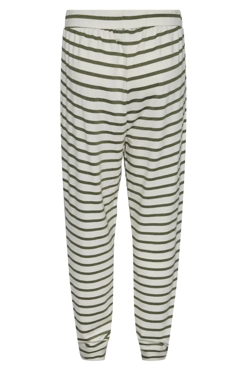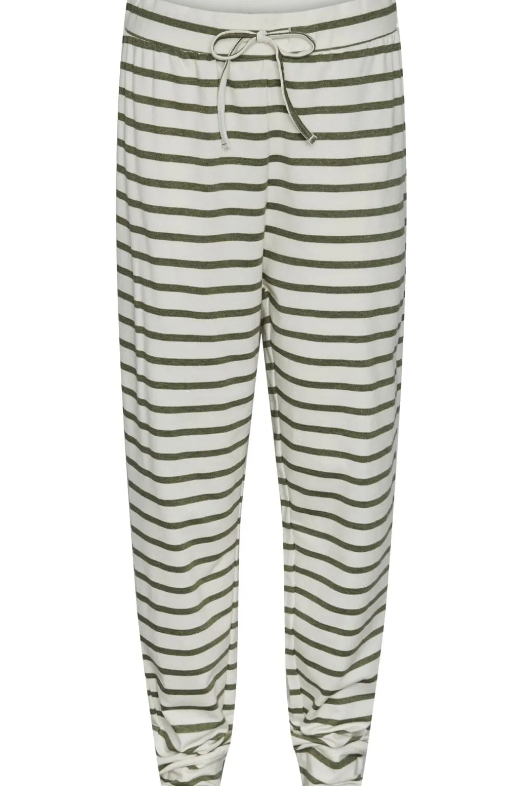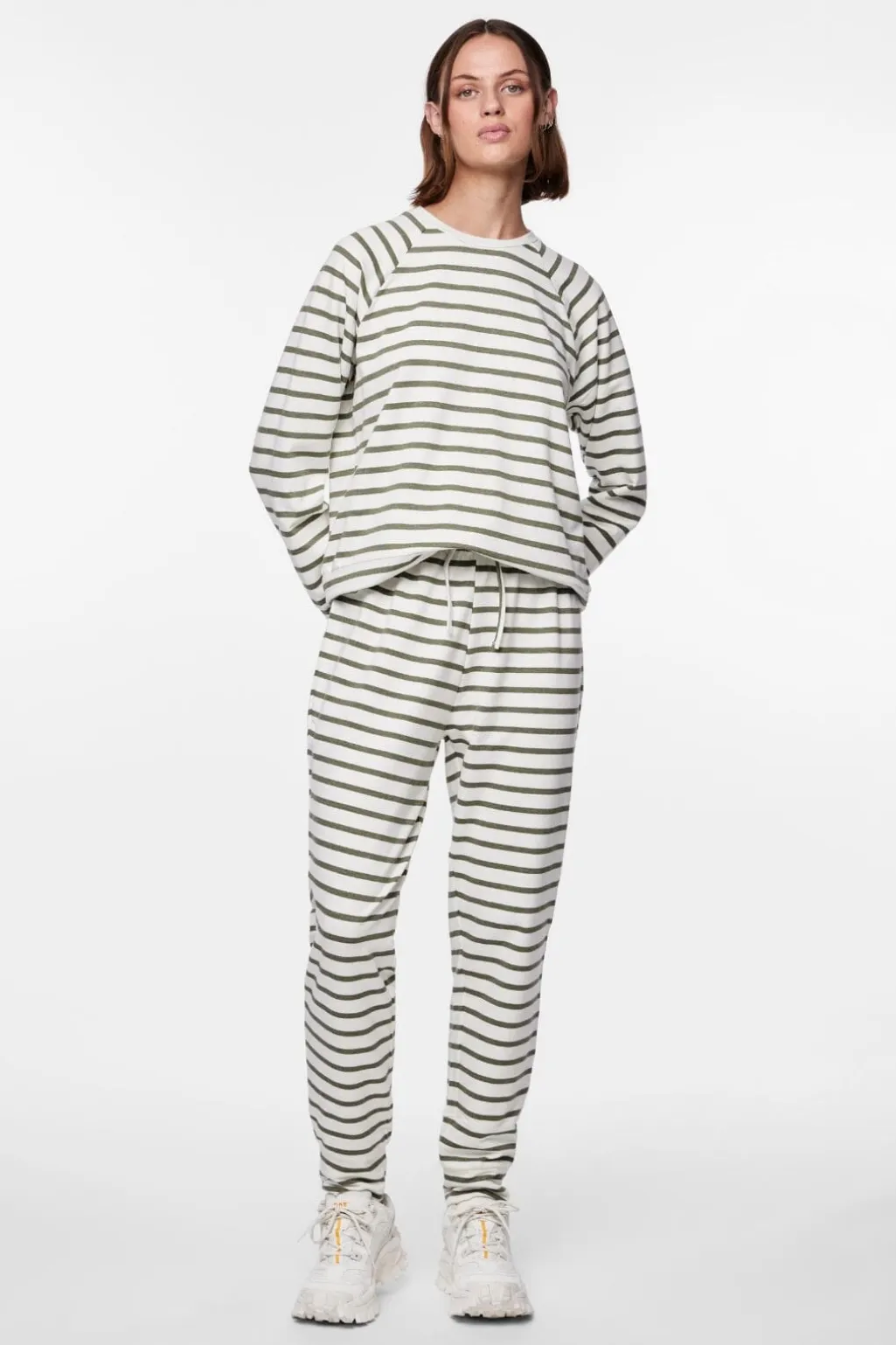 Stribede bukser fra Pieces i grøn og hvid. Bukserne har en afslappet pasform med elastisk talje og snøre til justering. Det stribede mønster giver et enkelt og stilrent udtryk.