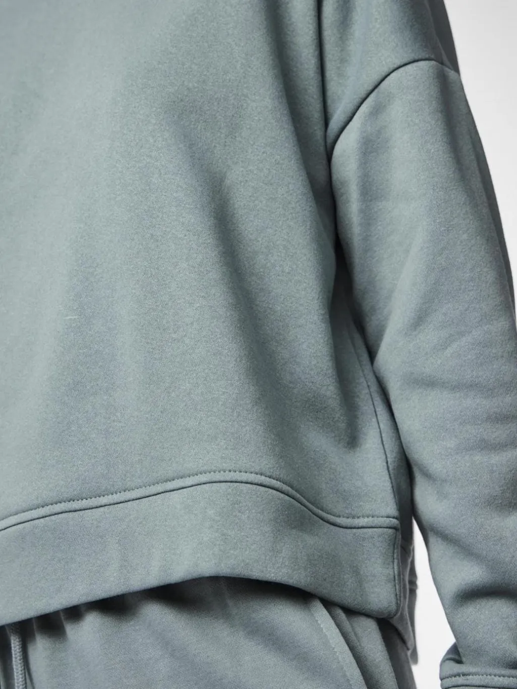 Blågrå sweatshirt fra Pieces med rund hals og regular fit. Fremstillet i en blanding af bomuld og genanvendt polyester med lange ærmer og elastiske manchetter.