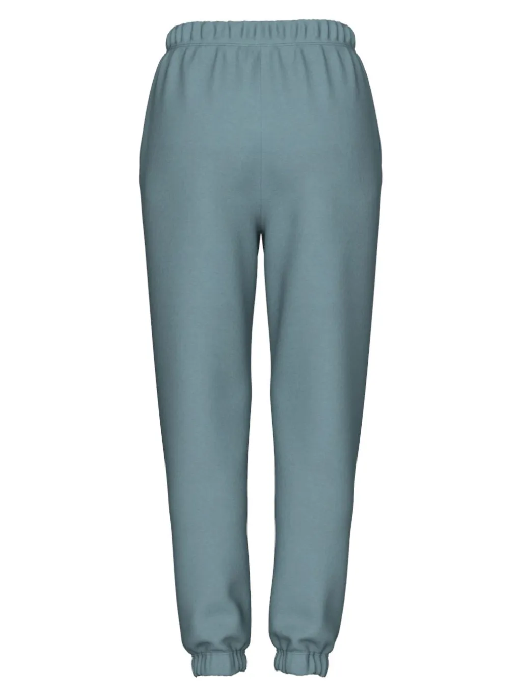 Sweatpants fra Pieces i en gråblå nuance. Bukserne har høj talje med elastik og snøre, der giver mulighed for at justere vidden.