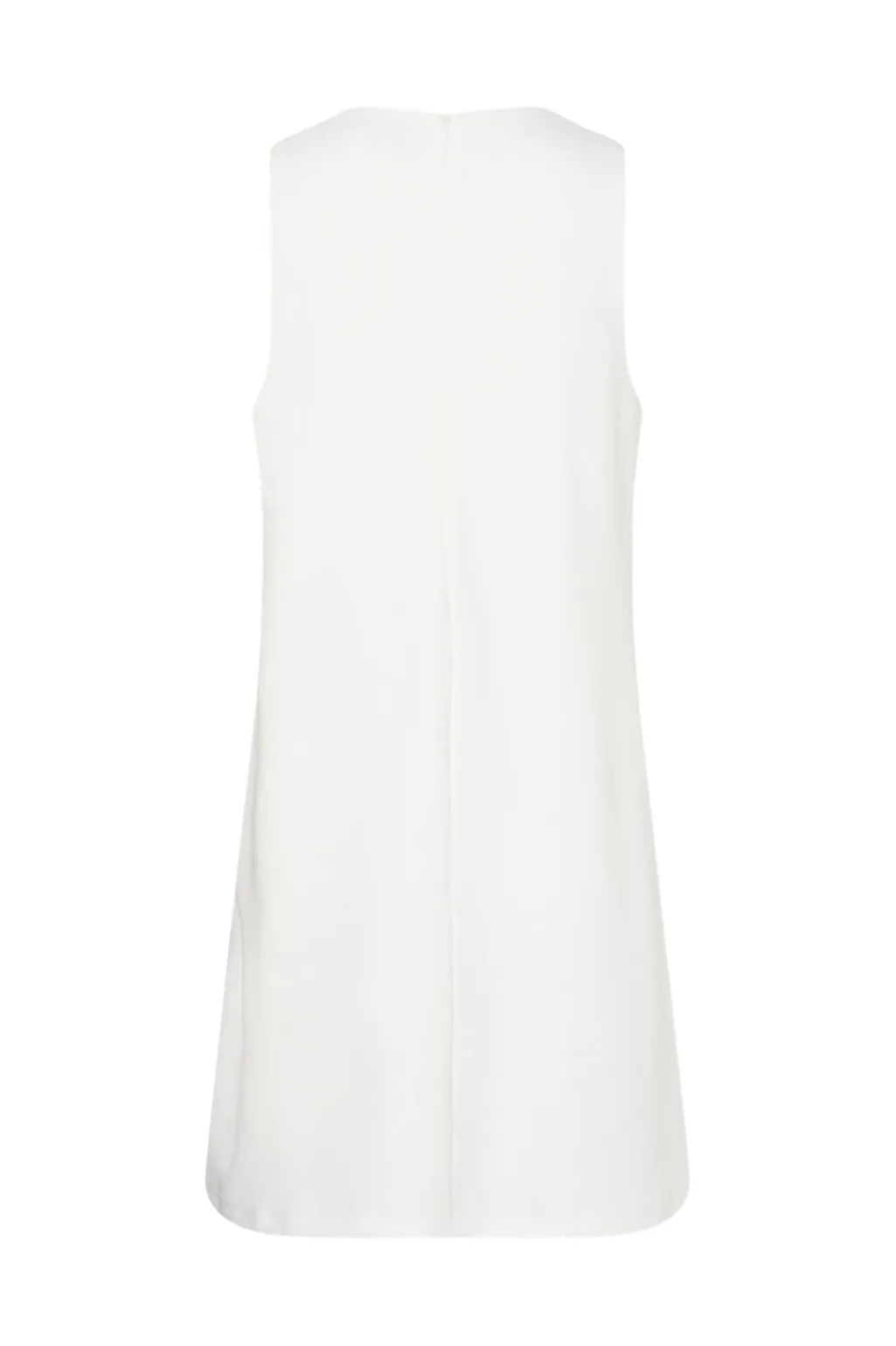Hvid kjole fra Pieces med rund halsudskæring og ærmeløst design. Kjolen har en løs pasform og en lynlås lukning bagpå.