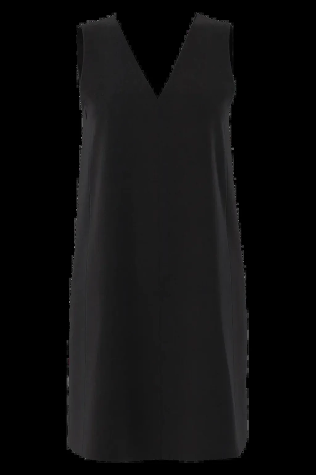 Sort spencerkjole fra Pieces med V-udskæring foran og bagpå. Den ærmeløse kjole har en løs pasform og går til knæet.