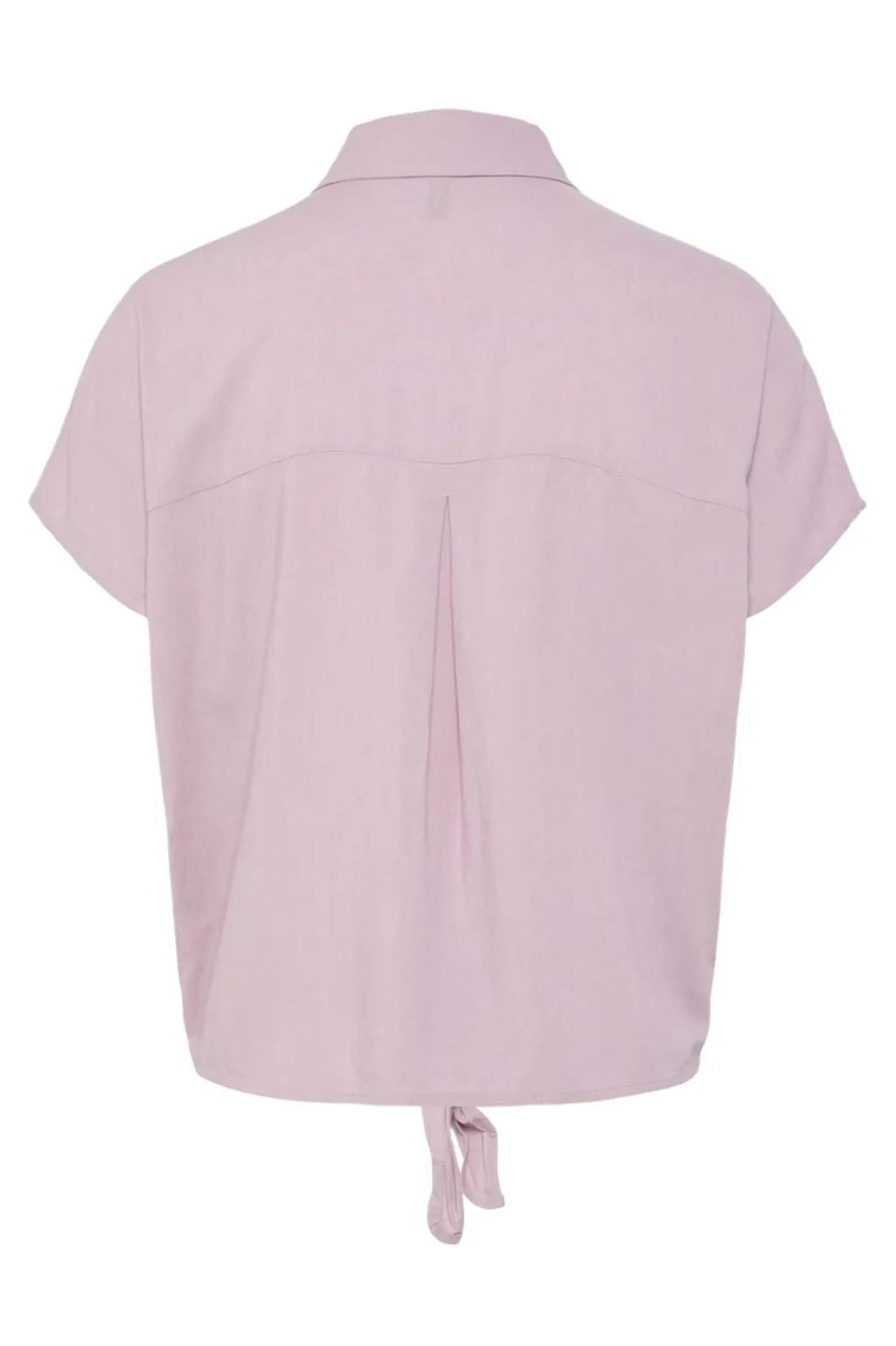 Lyserød skjorte fra Pieces med korte ærmer og skjortekrave. Skjorten har en knudedetalje i bunden og lukkes med knapper foran.