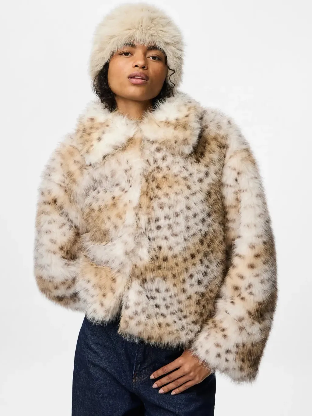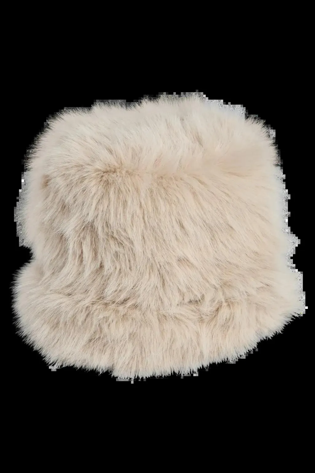 En fluffy hat fra Pieces i lys beige. Hatten har et voluminøst design med en rund form, der dækker hovedet helt.
