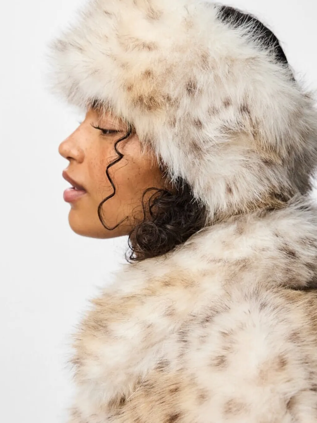 Fluffy hovedbånd fra Pieces med leopardmønster på en lys baggrund. Hovedbåndet har mørke pletter og en blød tekstur.