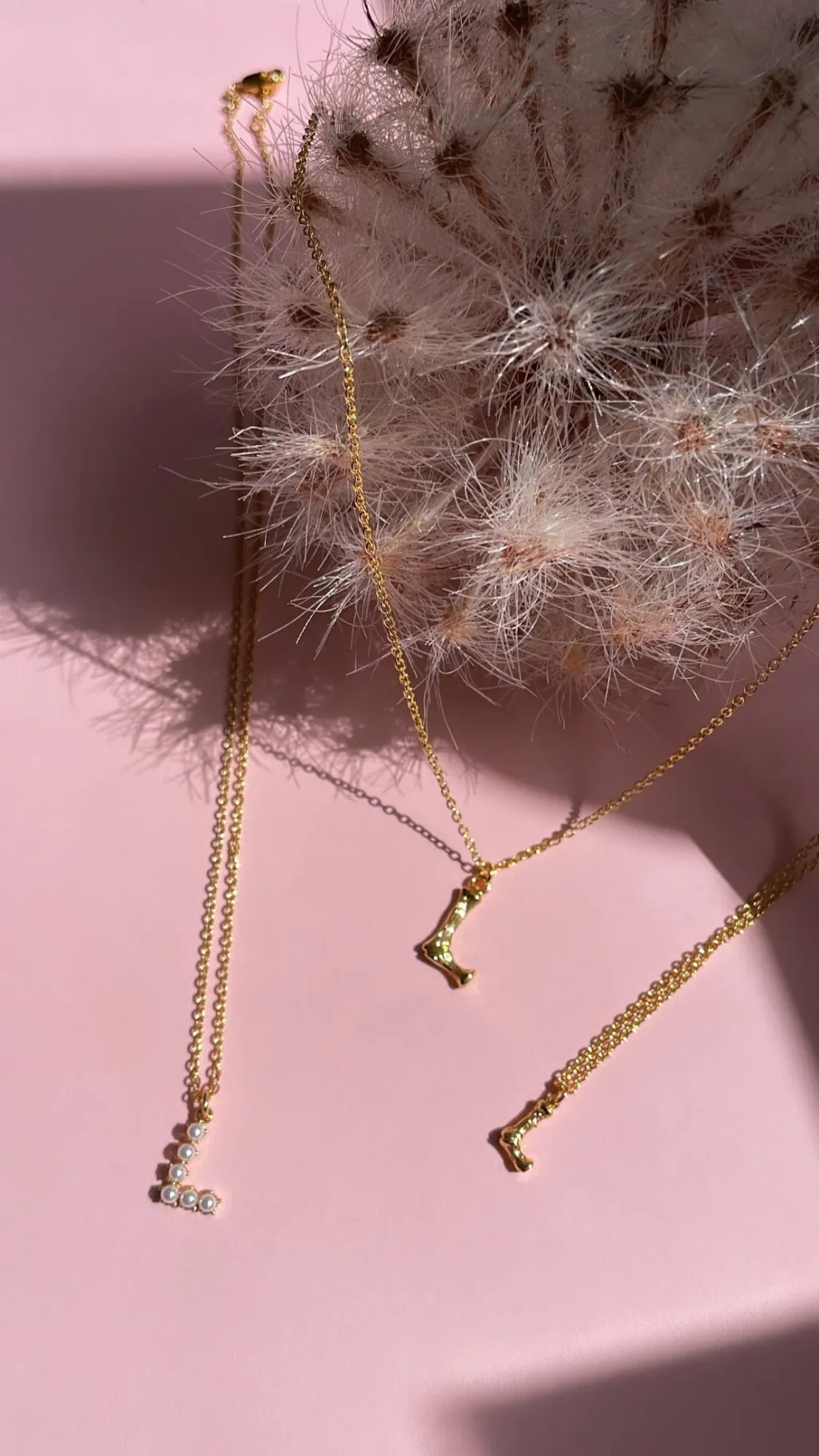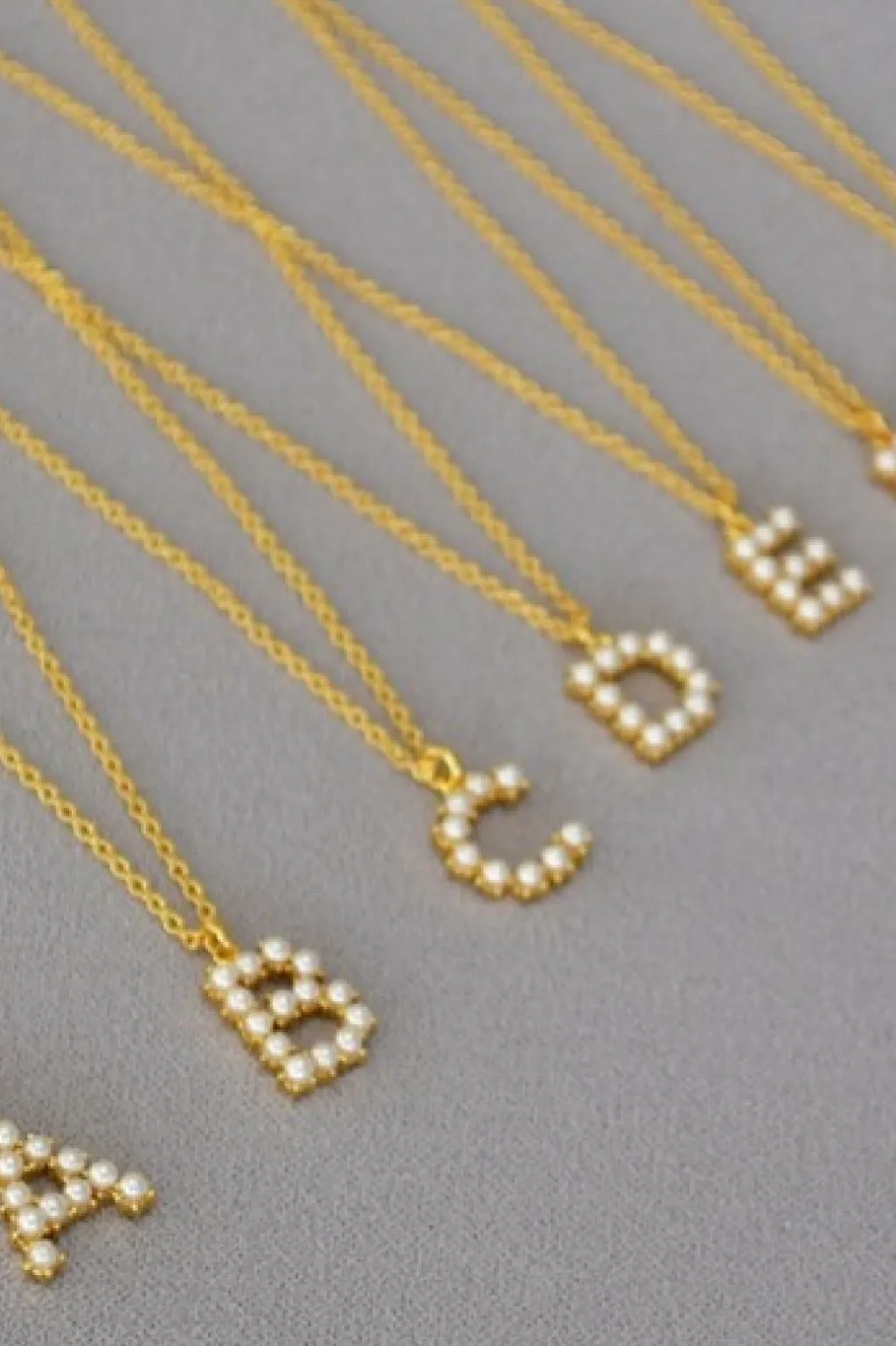 Forgyldt bogstavhalskæde fra Mellow Moon med perledetaljer. Halskæden har et 15 mm højt vedhæng og kan fås med alle bogstaver fra A til Z.