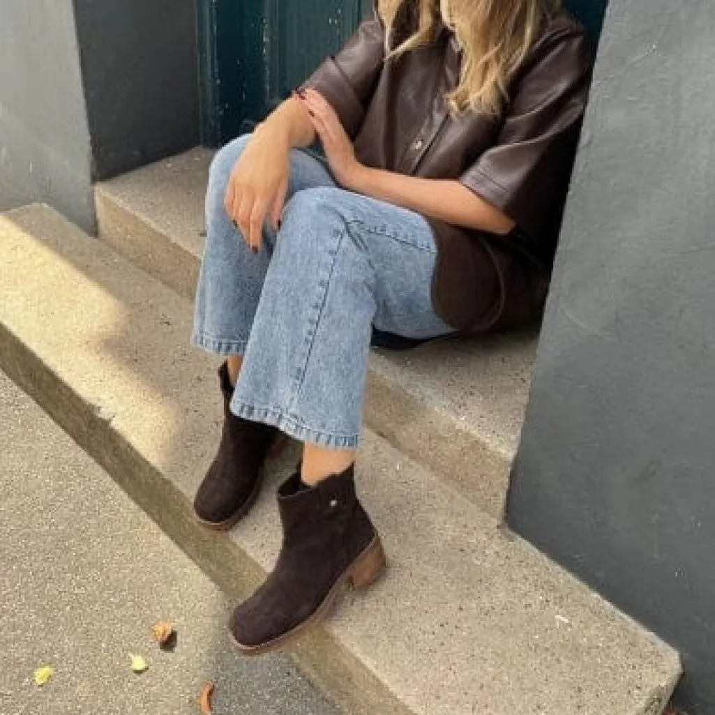 En moderne og rå støvle i blødt oily waxy suede, som giver et naturligt og eksklusivt look. Det korte skaft sidder flot til benet og gør modellen nem at style med både jeans, kjole eller nederdel – uanset sæson.