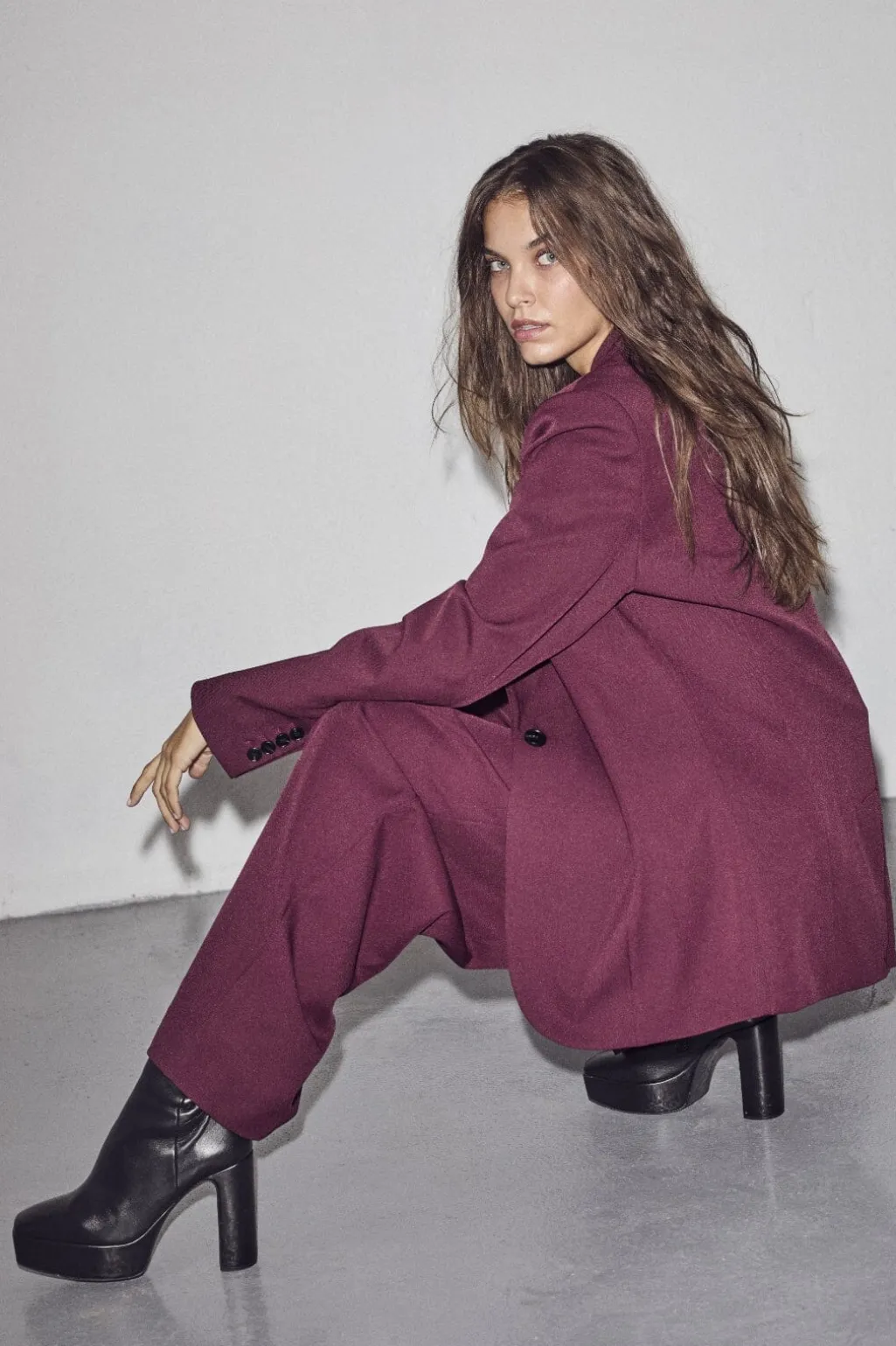 Plisserede bukser fra Haute L’Amitié i dyb burgunder. Bredbenet design med plisseringer foran og høj talje. Bukserne er lavet i en ensfarvet bordeauxnuance.