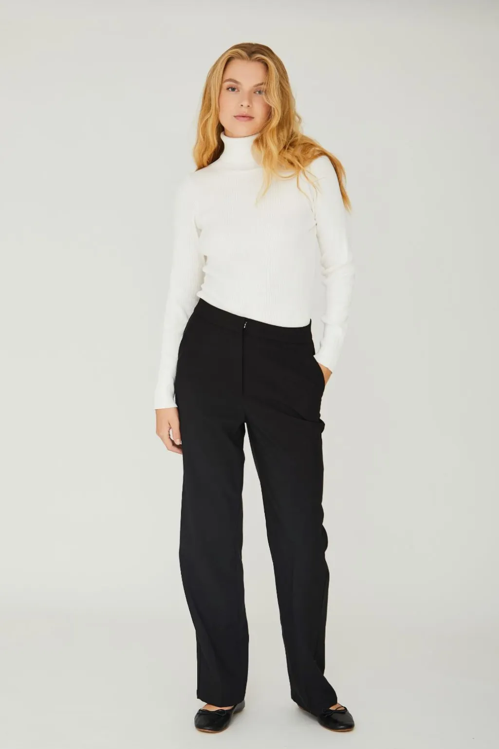 Ribstrikket rullekravebluse fra A-View i off-white. Blusen har en høj hals og en tætsiddende pasform med lange ærmer.