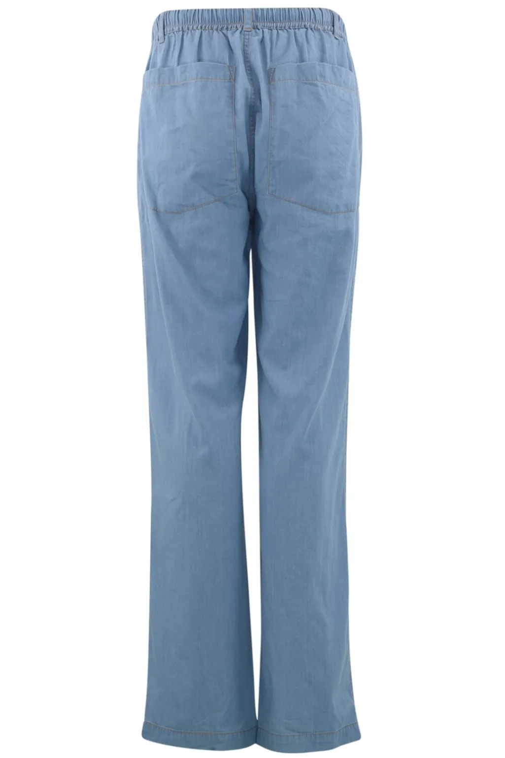 Denimbukser fra Continue i en lys nuance. Bukserne har brede ben og en elastisk talje med snøre, der giver en behagelig pasform.