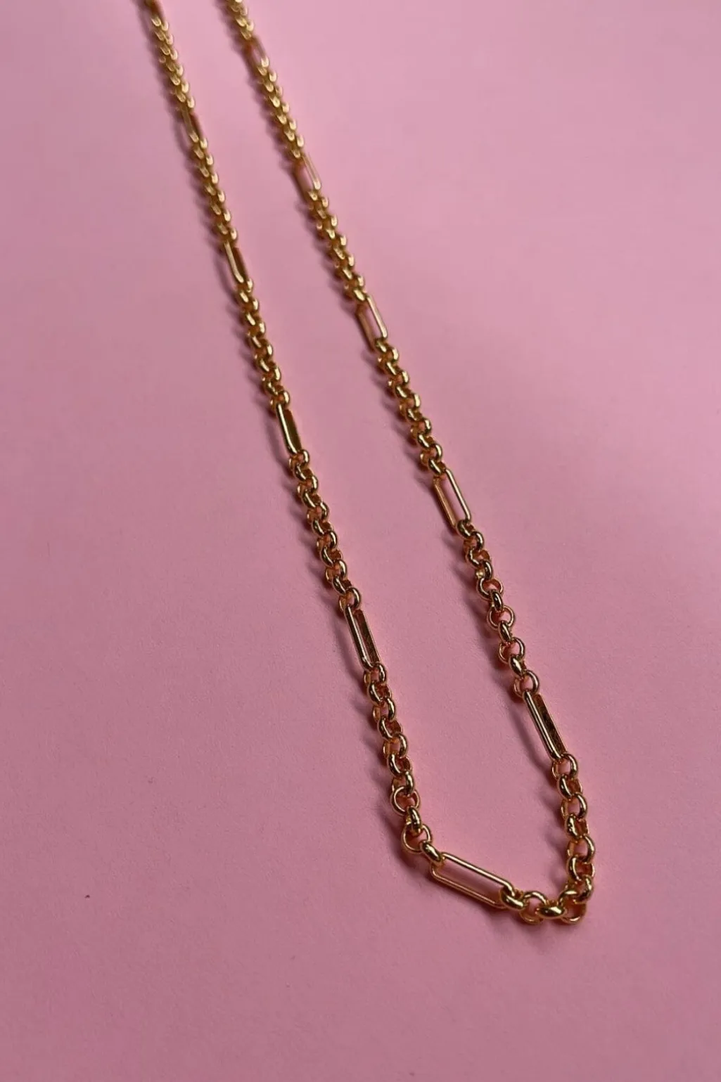 Guldfarvet halskæde fra Mellow Moon med runde led i forskellige størrelser. Kæden er lavet af messing med en gylden belægning, der giver en varm glans.