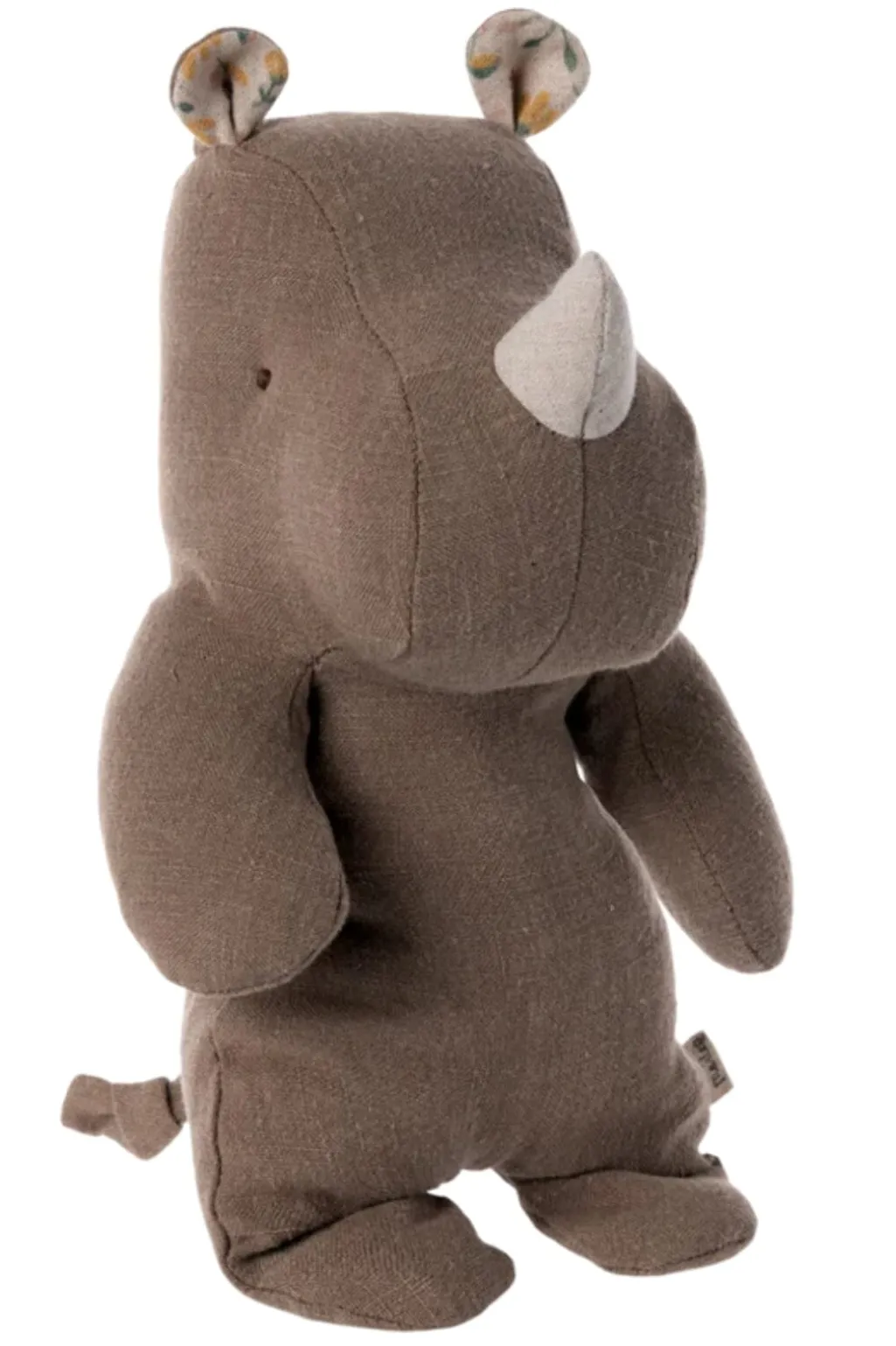 Brunt næsehorn i hør fra Maileg. Det bløde legetøj har en grå snude og mønstrede ører. Håndlavet i naturlige materialer med fokus på kvalitet og holdbarhed.