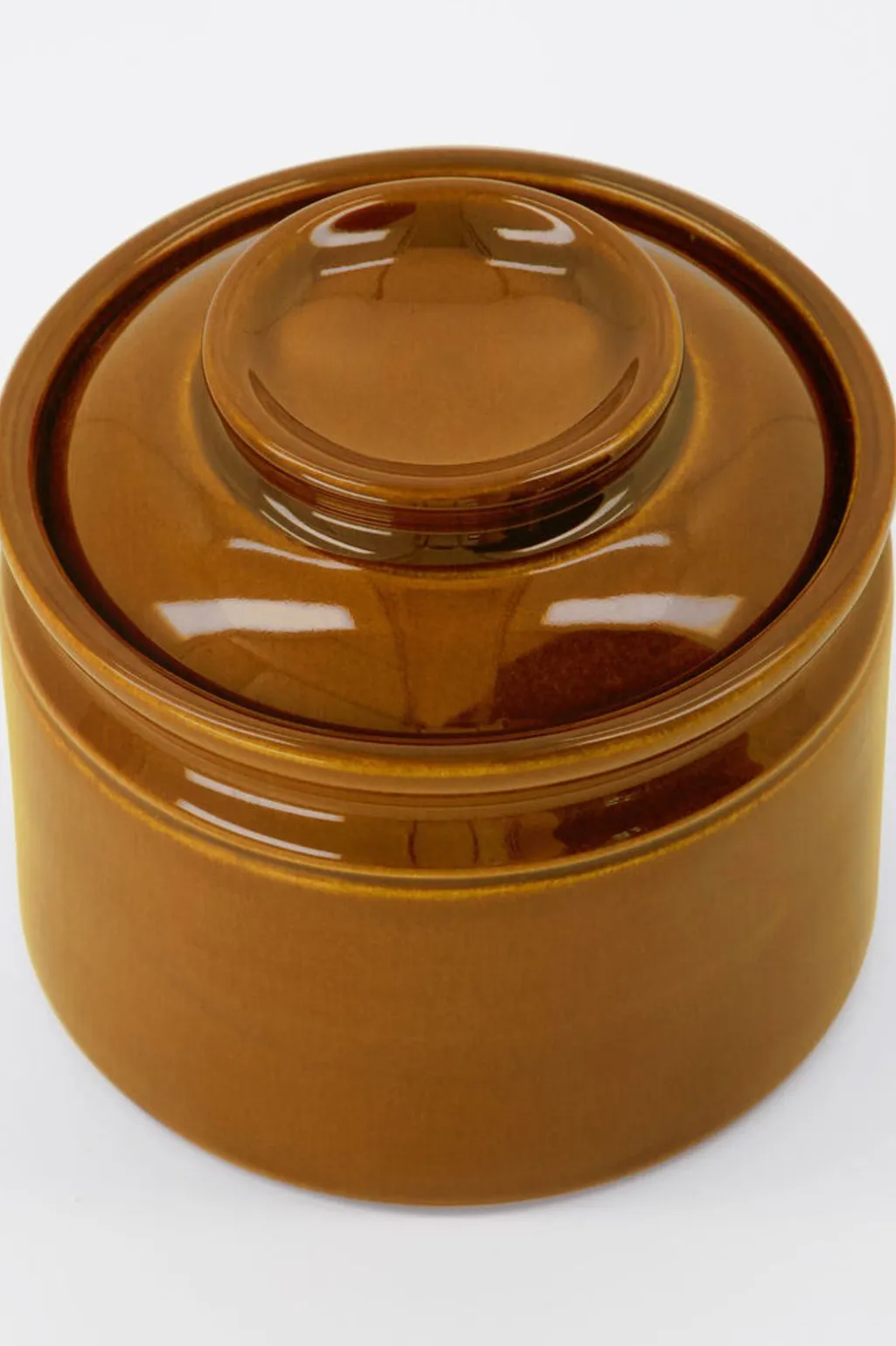 Det er en praktisk måde at have saltet tæt på, mens du laver mad. Takket være låget forbliver saltet tørt, mens krukken bliver en del af din indretning, når du ikke bruger den. Hvis du placerer krukken på spisebordet, kan dine gæster salte deres måltider og selv tilføje prikken over i’et. Krukken er lavet af stentøj og har fået en glasur i en varm retro-inspireret farve. Sammen med den glatte overflade og det klassiske design skaber glasuren et design, hvor funktion og stil smelter sammen. Hvis du vil, kan du gøre farven til en detaljefarve ved at sætte krukken sammen med den keramiske krukke i samme design.