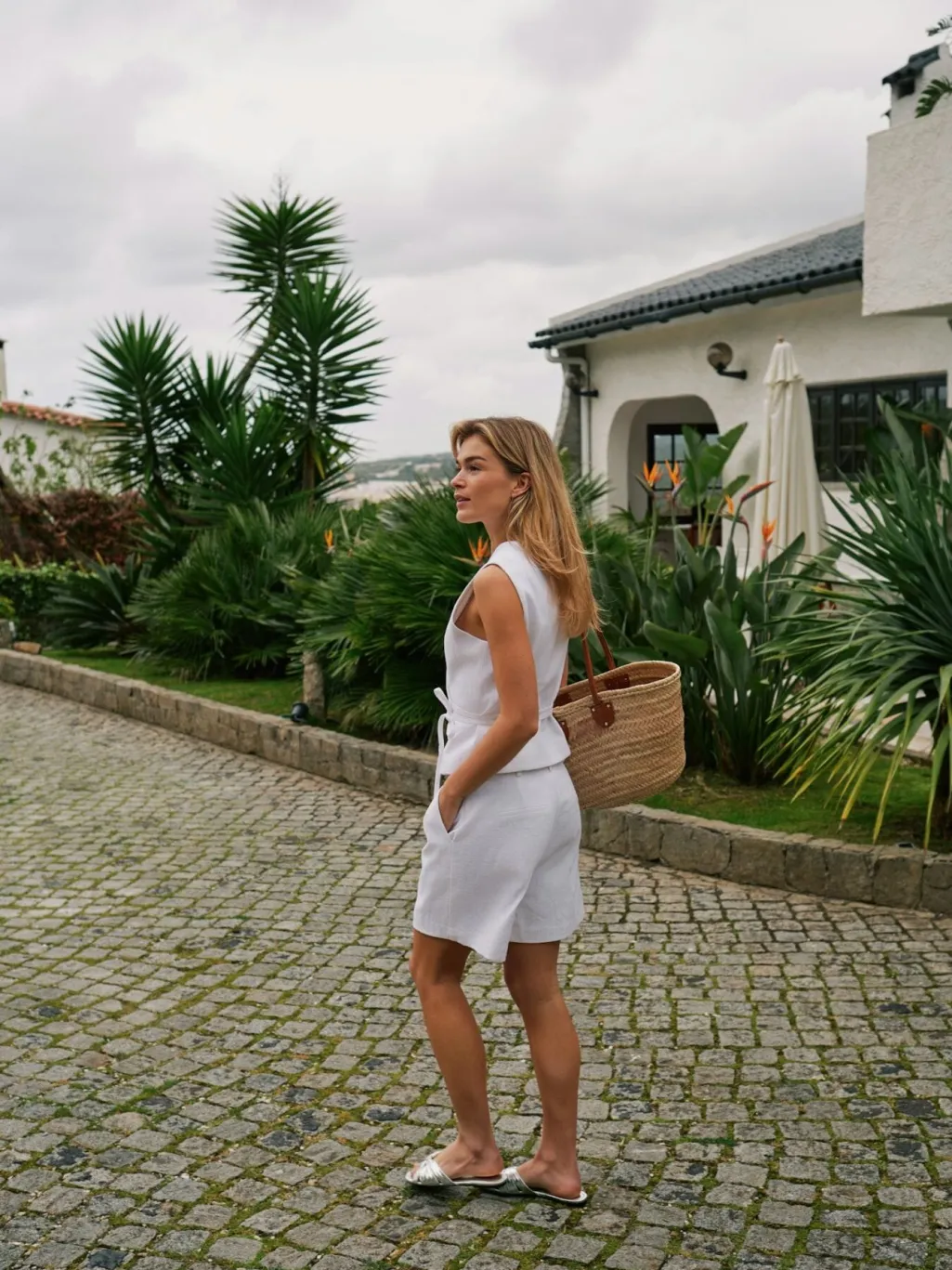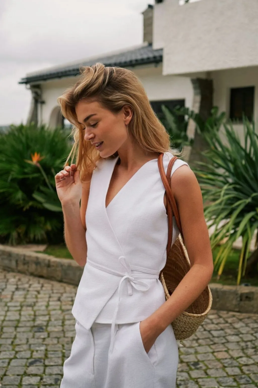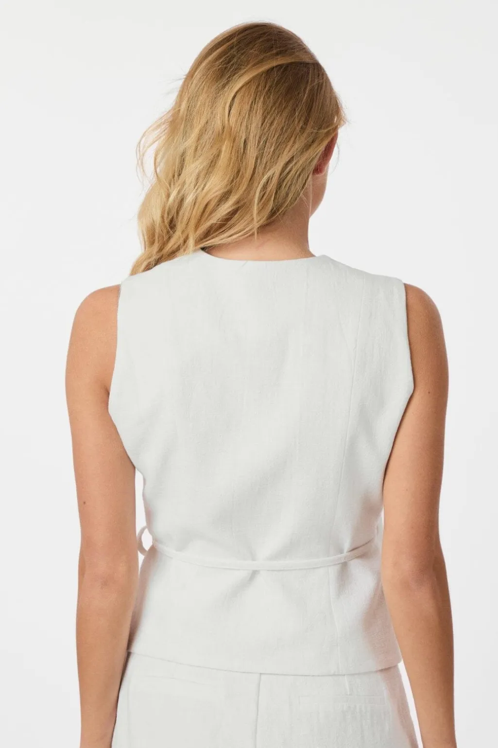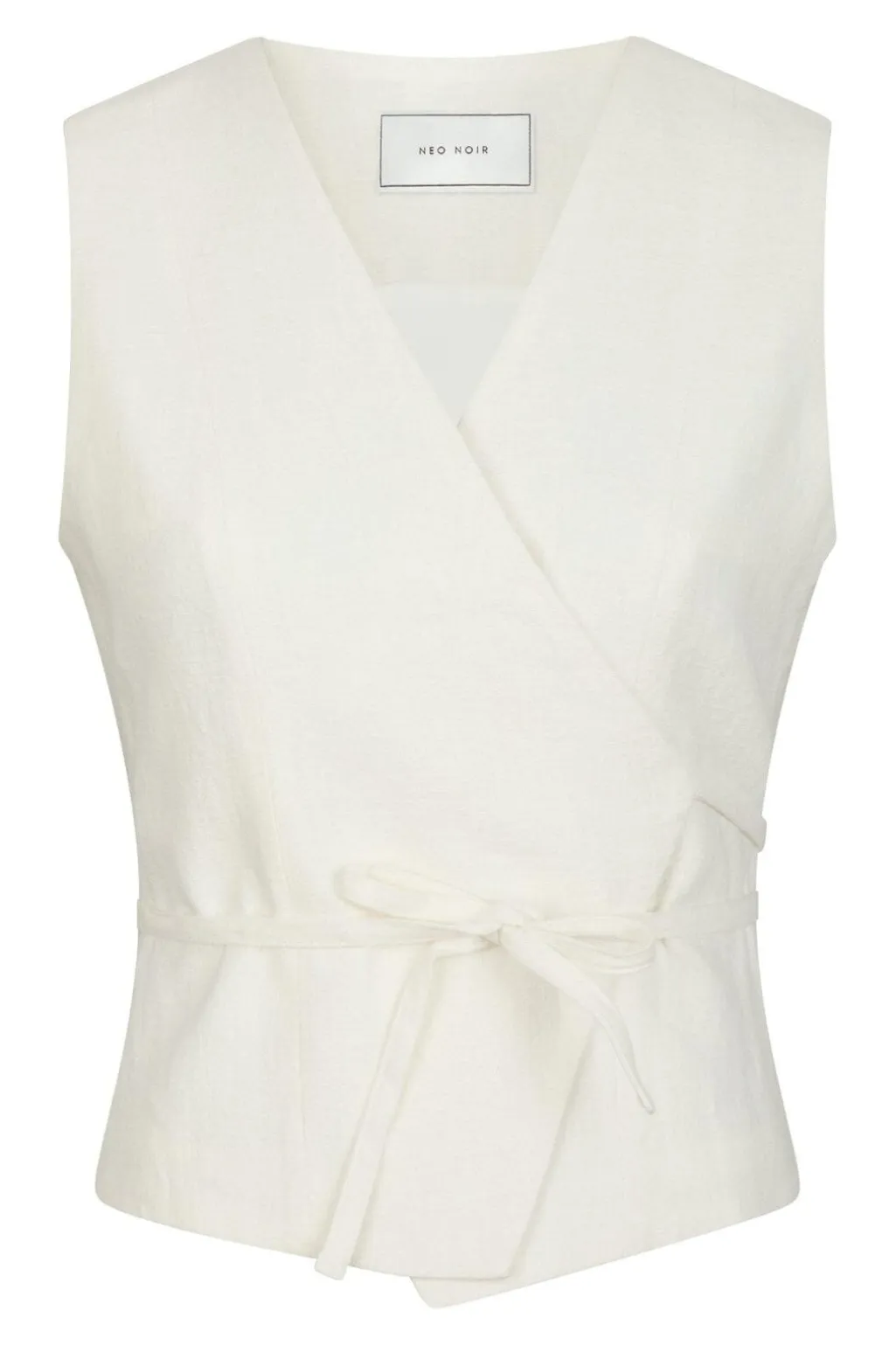 Off-white vest fra Neo Noir i ramie og bomuld. Vesten har en slank pasform med wrap-design og bindebånd i taljen samt V-udskæring.