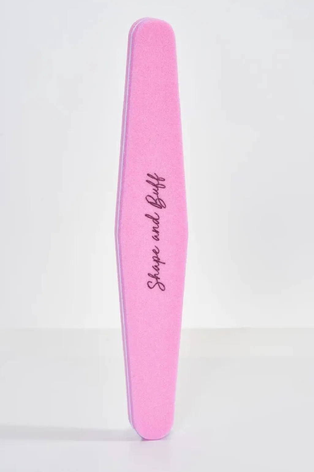 En pink neglebuffer fra Le Mini Macaron til formning og polering af negle. Den har en praktisk størrelse og en holdbar konstruktion til gentagen brug.